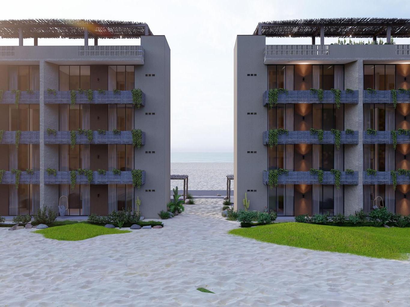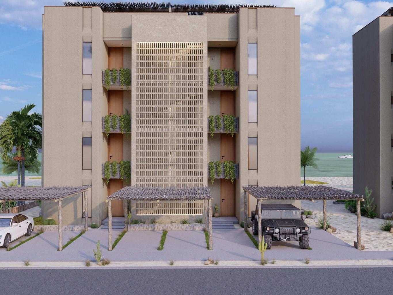 Exclusive development of only 16 units in two towers, located in El Sargento, La Ventana, Baja California Sur. Each condo offers ocean views and a peaceful setting. Units feature 71.50 m² with living-dining area, equipped kitchen with granite countertop and cooktop, 2 bedrooms, 2 full bathrooms, terrace, and laundry area. Amenities are ready to enjoy, including pool, jacuzzi, and on-site restaurant. Just 9 minutes from Agua Caliente Beach and 45 minutes from La Paz. Ideal for investment or a relaxing seaside home.