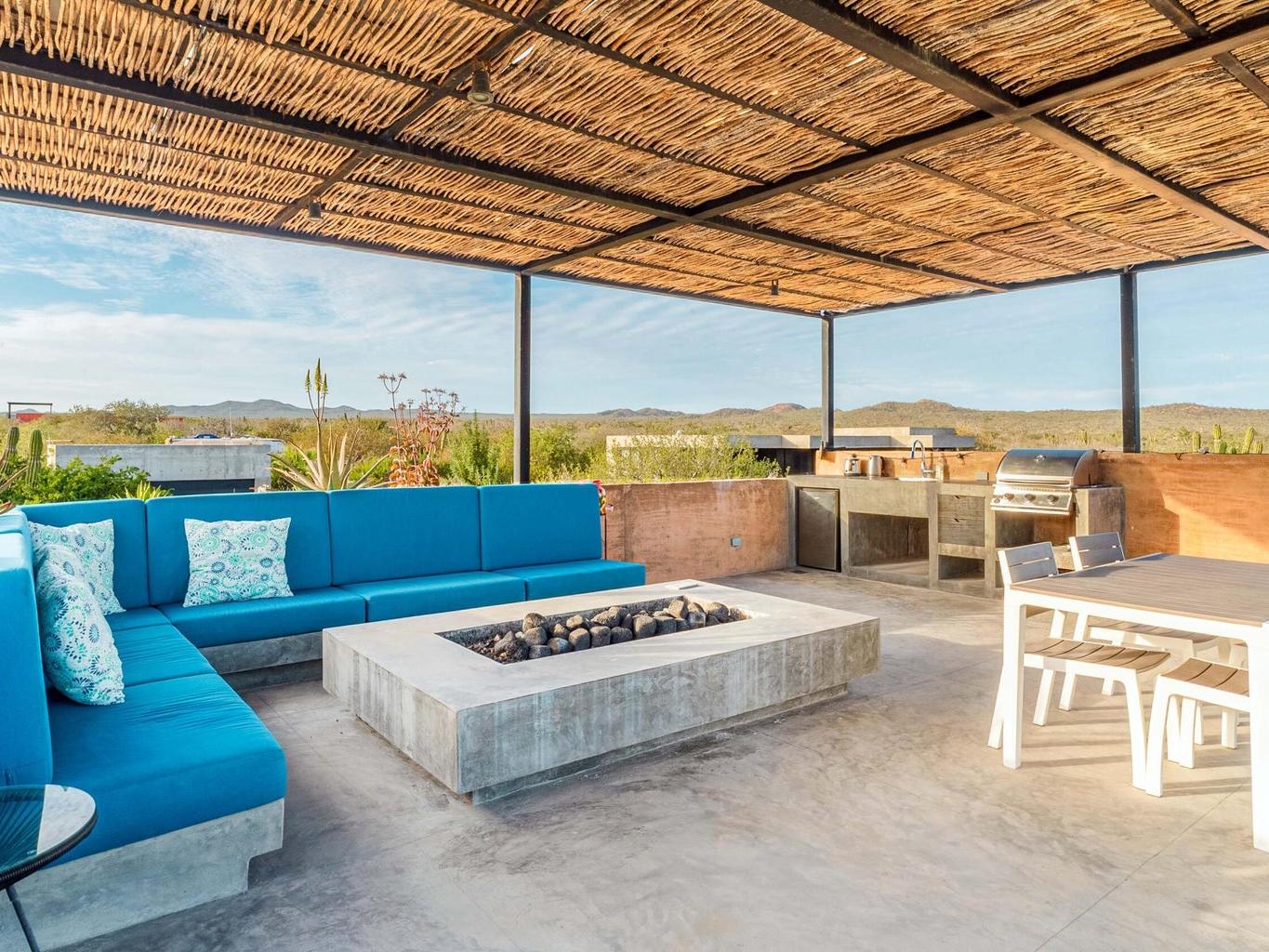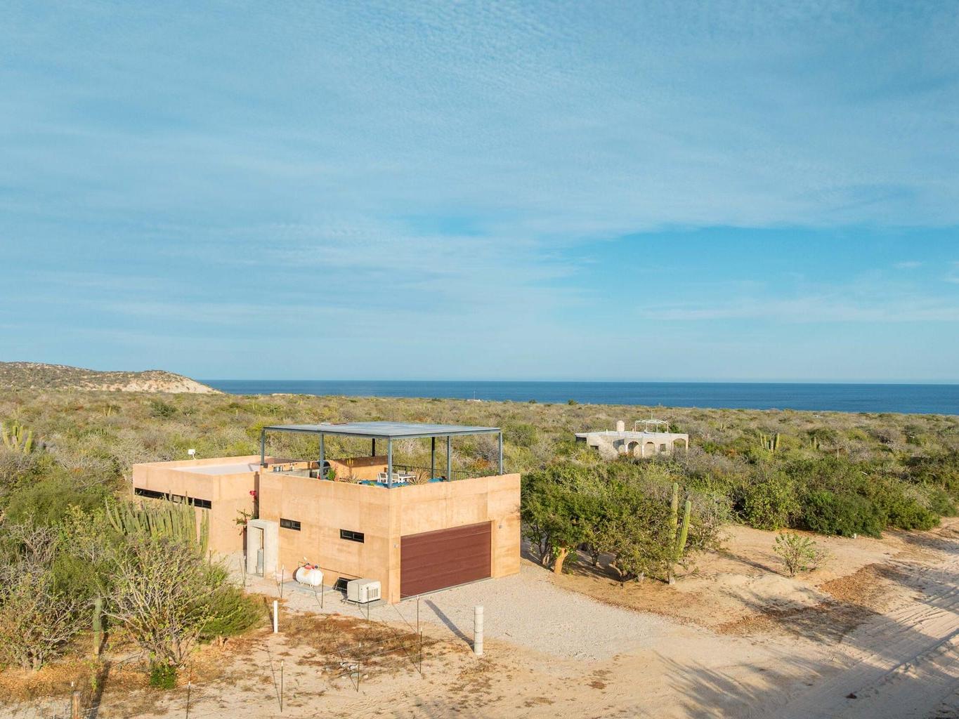 A rare opportunity to secure a turnkey retreat in the heart of the East Cape with this 50% ownership opportunity at ''Cuatro Caballos.'' Located in the gated Terranova II community on a massive, highly desirable 1,650 sq mt lot, this modern home maximizes the Baja lifestyle. The high quality design and build features a high-clearance 1,144 sq. ft. garage with 12-ft ceilings for car and toy storage, plus a separate 2-bedroom casita each with private ensuite baths and AC. Daily life centers on the spectacular 572 sq. ft. shade covered, open-air rooftop deck, complete outdoor kitchen, fire pit, and sweeping ocean views. The home is fully off-grid capable with a robust solar system, backup generator, and water storage. Ownership and use is governed by a co-ownership and operating agreement