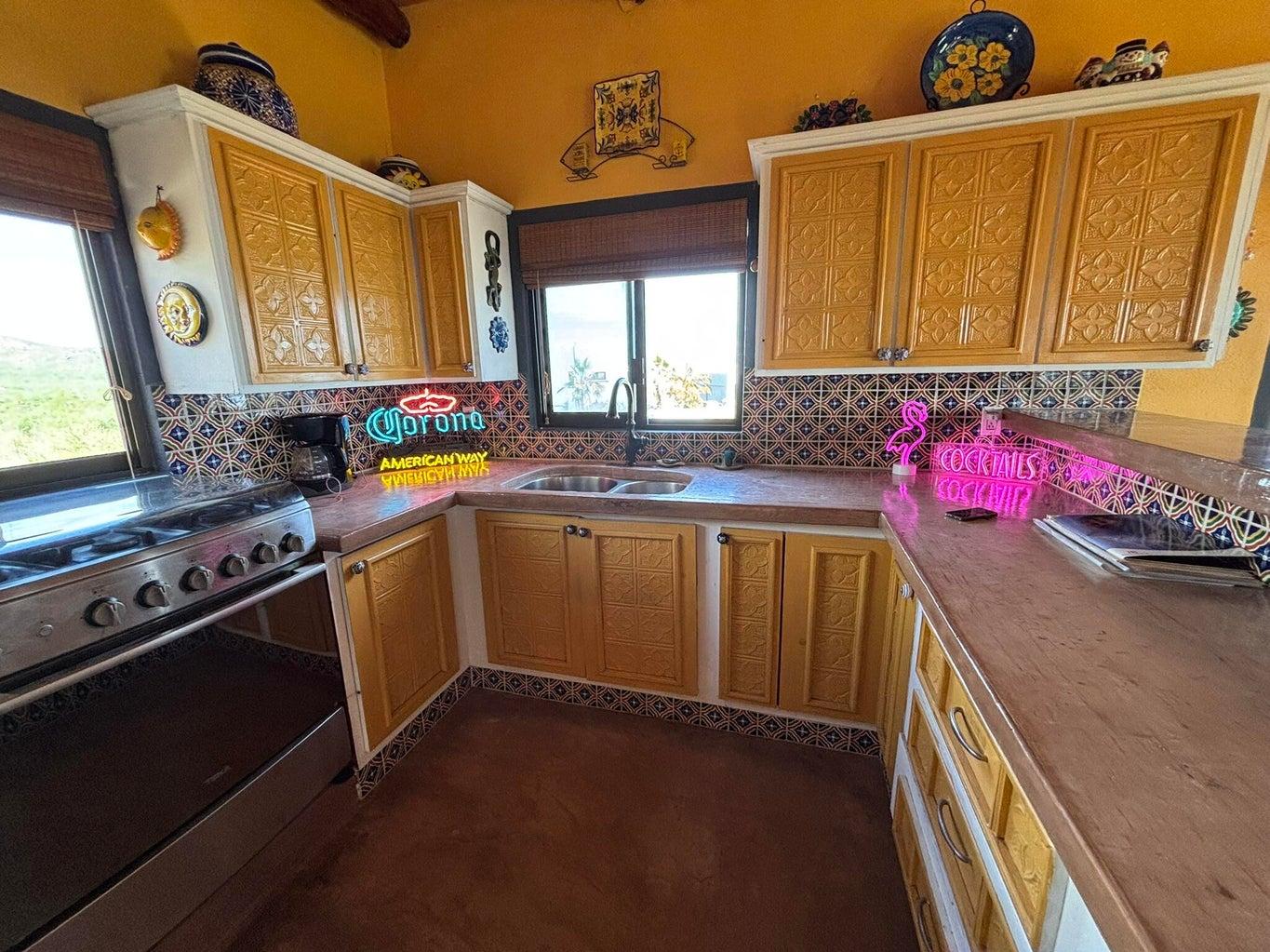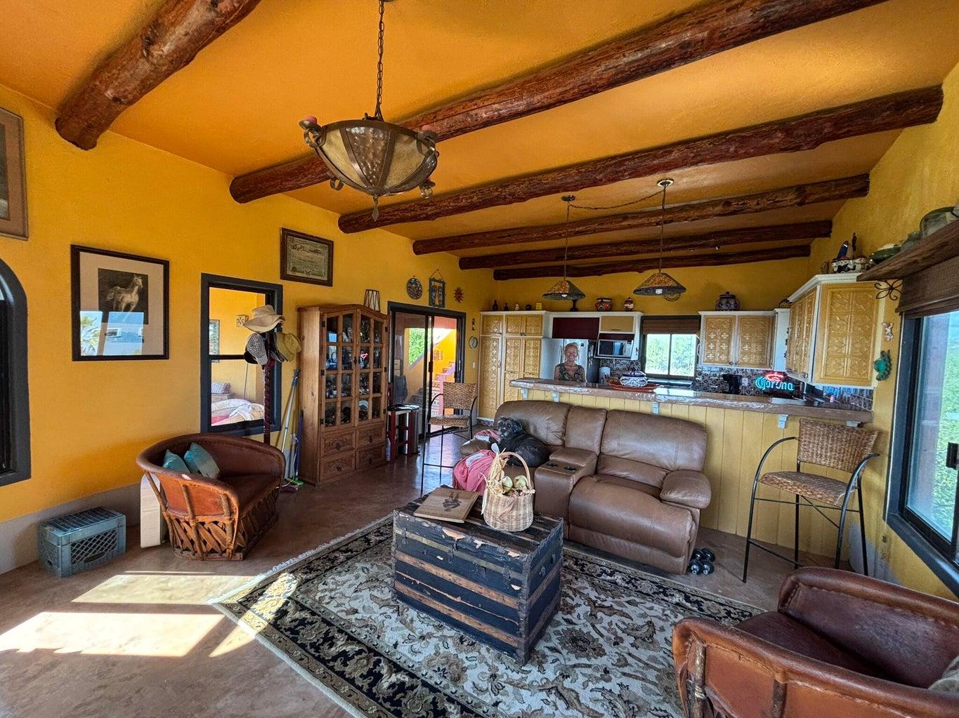Welcome to Casa Sunrise! Located in the Catillo de Arena neighborhood. Enjoy amenities like pickleball, bocce ball, and a pottery studio! Casa Sunrise has panoramic views of the Sea of Cortez! Gorgeous sunrises await you from your beamed ceiling smartly laid out kitchen and dining area and main full ensuite bedroom. A nice view balcony separates the kitchen dining area to the main bedroom with stairs that lead to the roof or down to the other full ensuite bedroom, garage, and laundry room / utility room. Lots of outdoor space to add on or keep as it is. Just minutes to the Castillo de Arena dune and miles of gorgeous beach. Watch the whales jump and just 90 minutes to the airport and 30 minutes to Cabo Pulmo known for world class diving and snorkeling, and near good surf too! Check it out