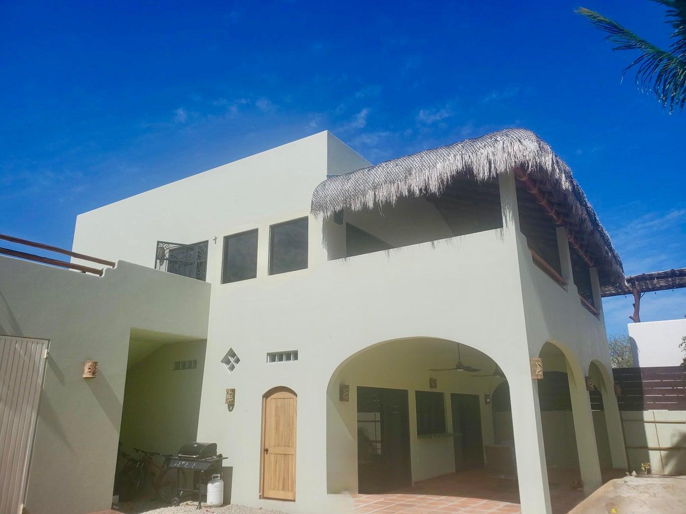 This property is just step away from a stunning white sandy beach and is right in the heart of Los Barriles, where sunny days and full moons bring peace and tranquility. The house features two completely separate living spaces. On the first floor, you'll find 2 bedrooms, 2 full bathrooms, a living room, a kitchen, and a dining area, along with a private terrace. There's also a garage suitable for one car and your ATV's. The second floor offers more privacy with 2 bedrooms, 2 full bathrooms, a living room, dining area, and kitchen, plus a terrace with ocean views, perfect for enjoying beautiful sunrises and moonrises. Additionally, there's a special area that can be designed for BBQ's or gatherings with family and friends. Large lot with room for more casitas.