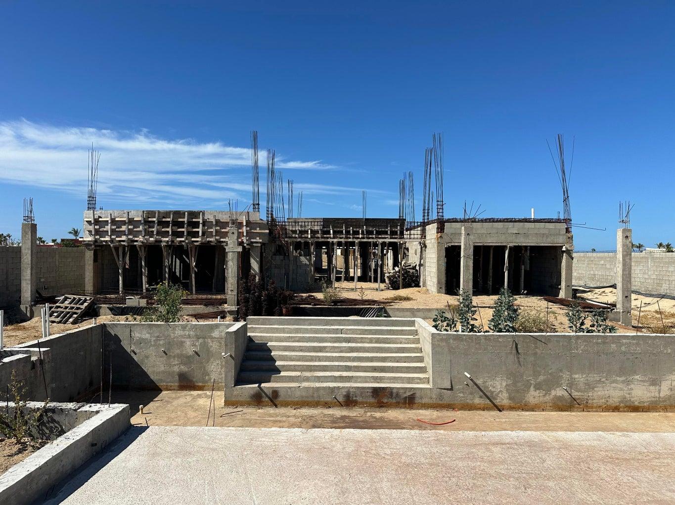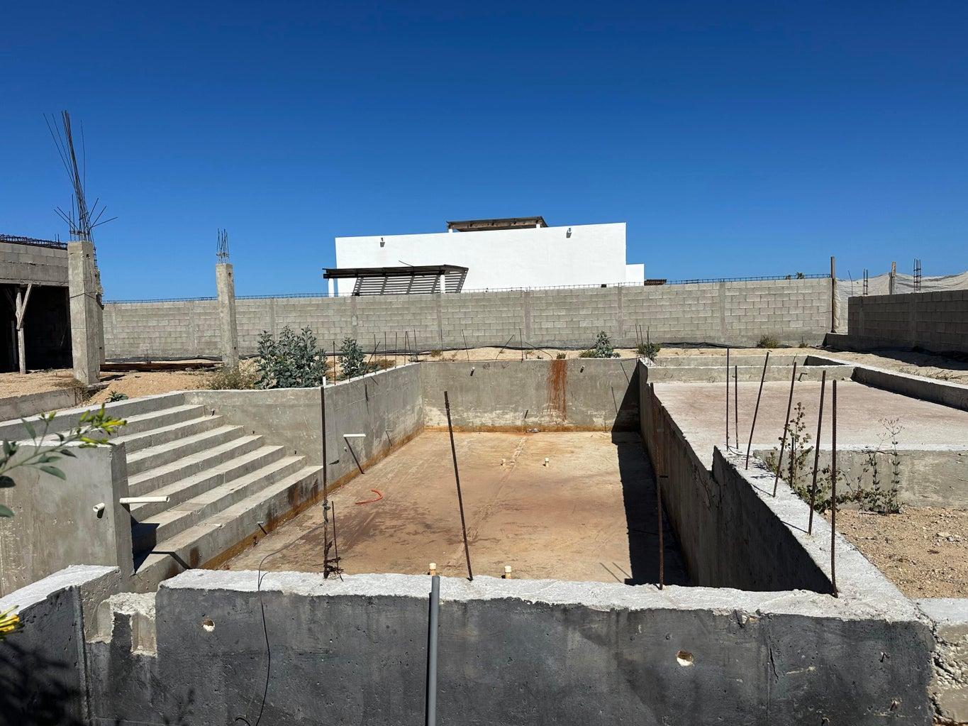 Opportunity in Lighthouse Point Estates. this modern home is offered mid construction on a 1,938 m2 lot with strong progress in place: 1090 sq ft casita (70%), 1600 sq ft Garage (80%), and main home (50%). Concrete pool and hot tub are built and awaiting finishes, with portions of the perimeter wall complete. Structural Components have been weatherproofed to preserve the integrity of the structures. Enjoy mountain views from the main living areas and ocean views from the future rooftop deck. Steps to a quiet sandy beach known for excellent shore fishing. Located 15 minutes from La Ribera. Customize and complete to your vision in this gated community.