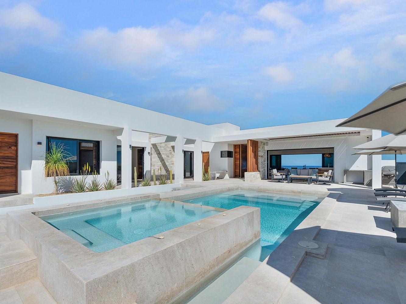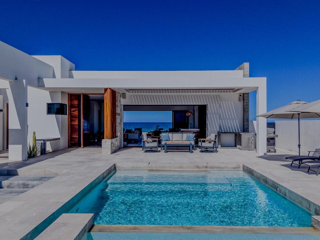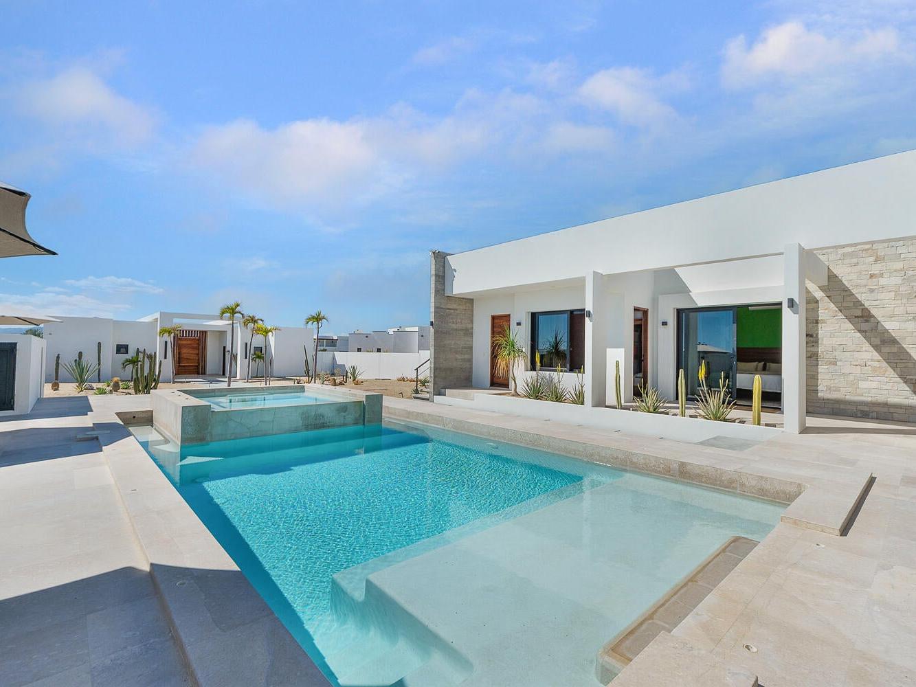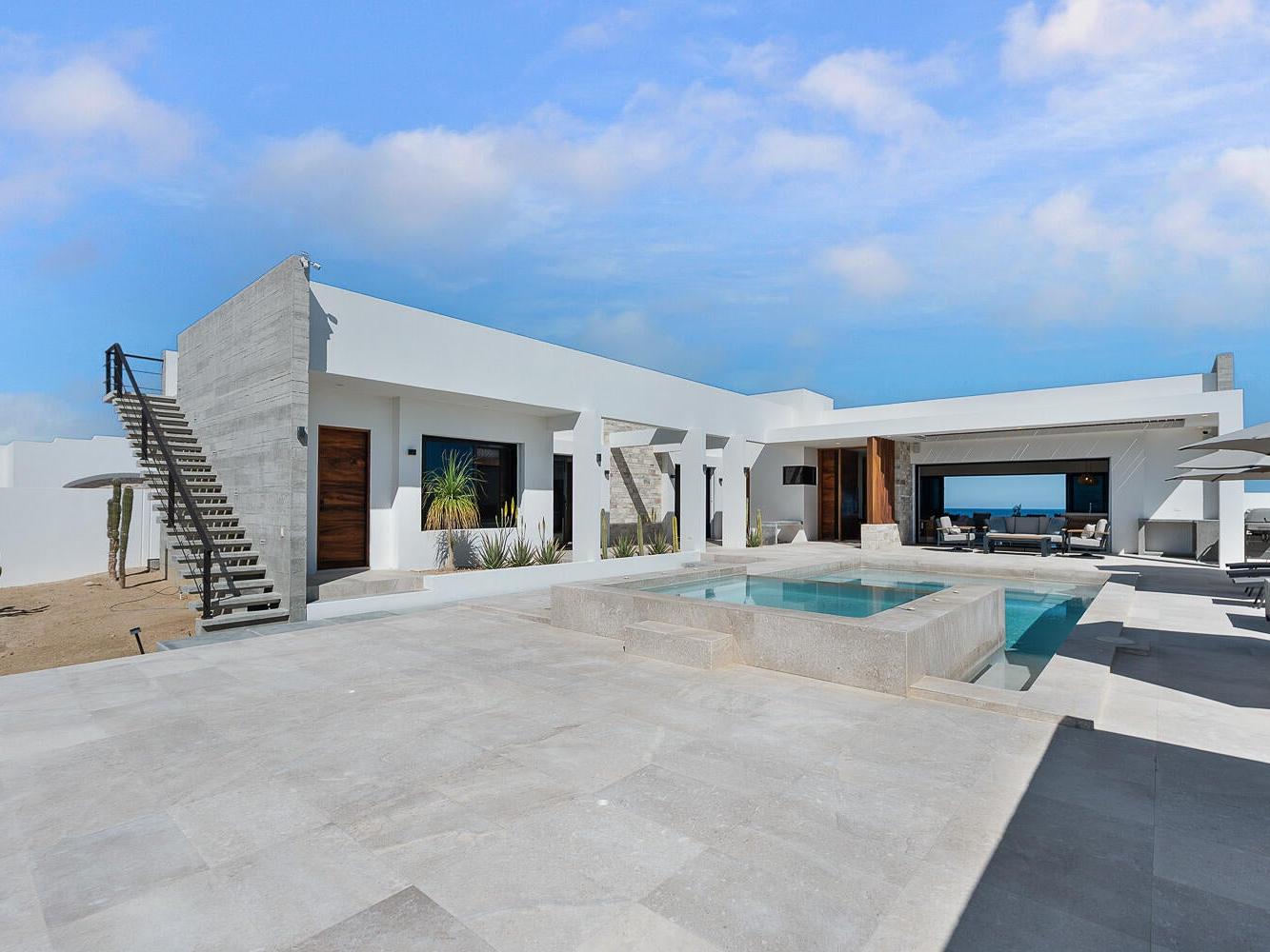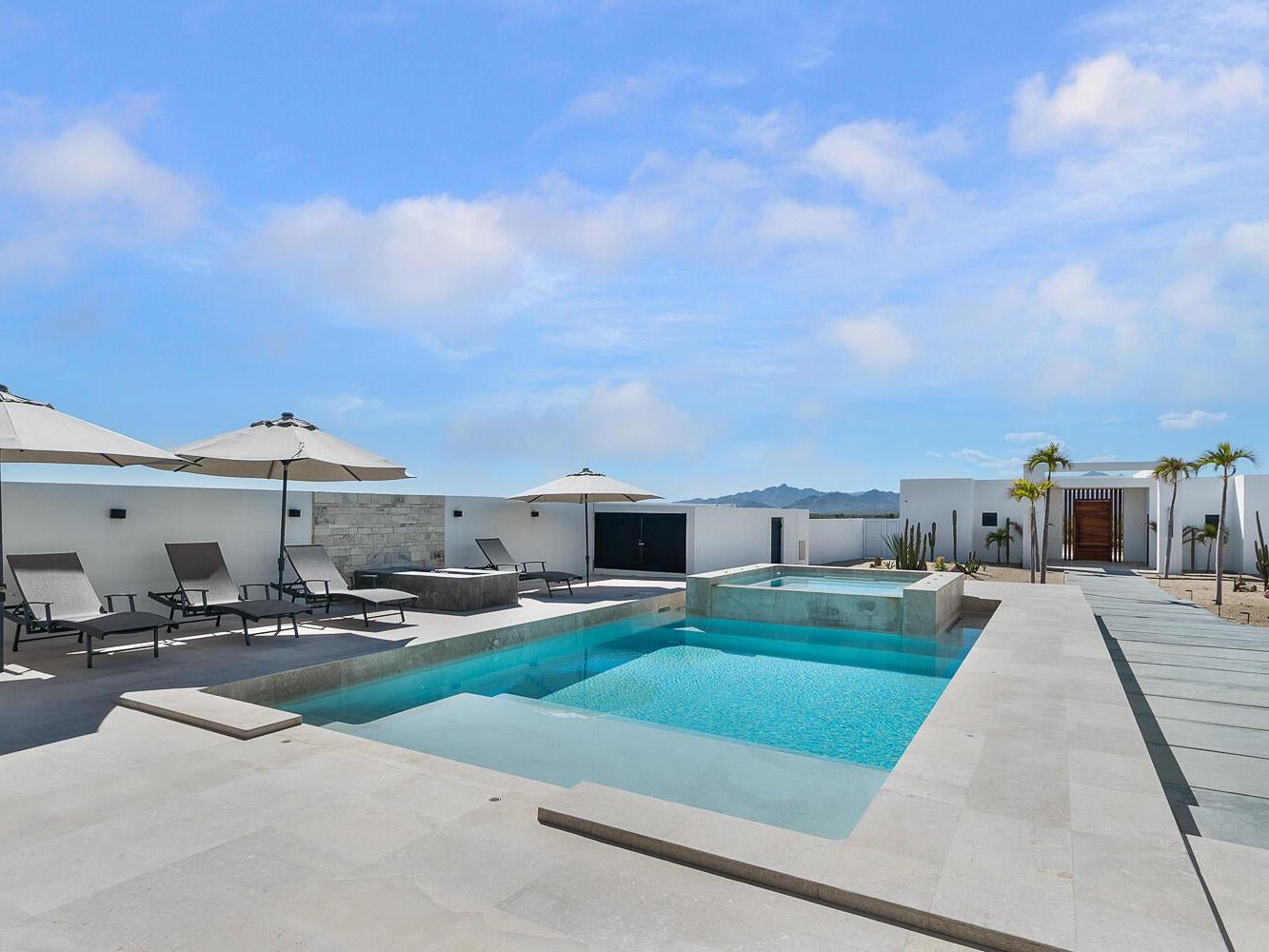 Welcome to Casa Perla del Mar! Experience the pinnacle of desert-meets-ocean living in this stunning 4-bedroom, 3.5-bathroom contemporary estate. Located within the gated and guarded community of Lighthouse Point Estates. This home greets you with a striking architectural facade defined by crisp white lines, textured stone accents, and manicured xeriscaping. The interior transition leads to an expansive outdoor oasis. A private, rectangular swimming pool and integrated spa serve as the centerpiece, flanked by a spacious sun deck and sleek lounge seating. For those who crave the calm waters of the Sea of Cortez, the property opens directly onto a secluded beach, where a shaded terrace with built-in concrete banquettes provides the perfect vantage point for viewing the horizon.