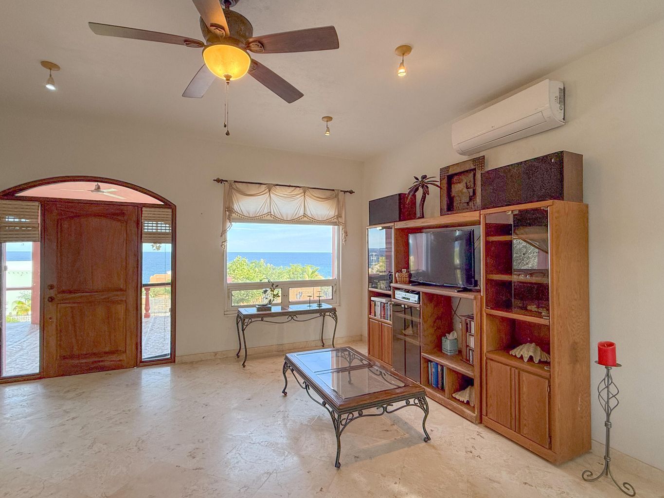 Welcome to Casa Rosemary, located close to the beach with breathtaking views and safe and supportive neighborhood. This is a ''gotta see'' and won't last long; not many come available in this area! Entertain from the patio roof with full 180 degree views of the Sea of Cortez and Sierra de la Lagunas Mountains to the south, or sitting on the fantastic porch below. Electric and solar remote gate entry allows easy access up the beautiful tiled driveway, right up to the front door! Gate 2 opens a drive to your 14 ft tall triple fabulous steel garage doors to park your boat, quad, and RV. Gate 3 is for side and back yard access. Inside, as you enter the tall ceilings throughout, attention was given to detail in the open concept living room.
