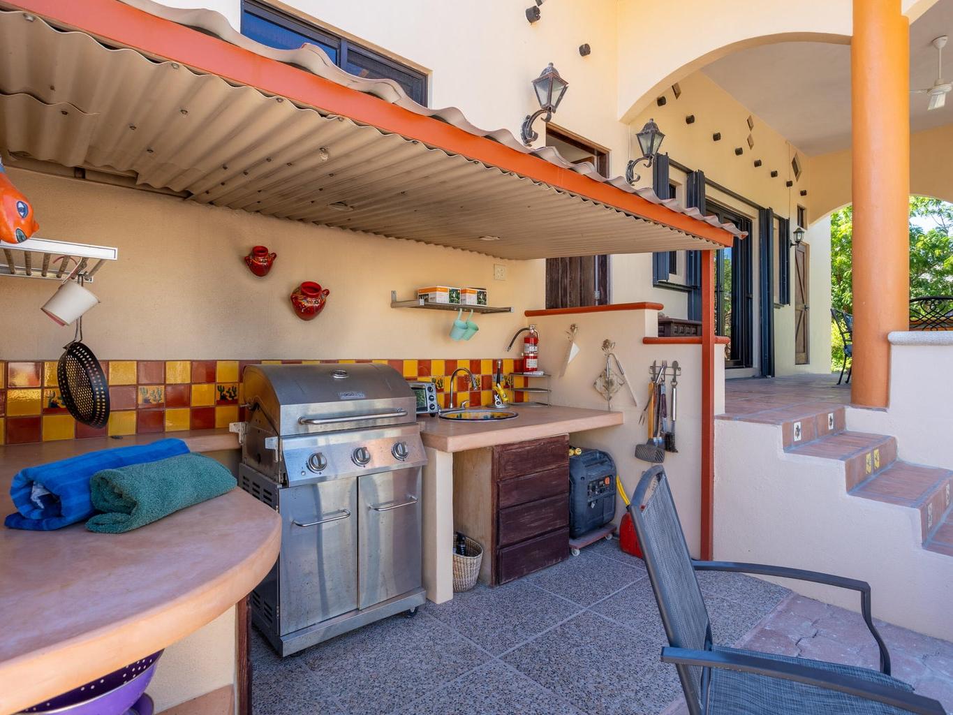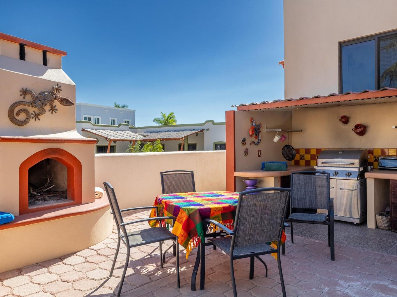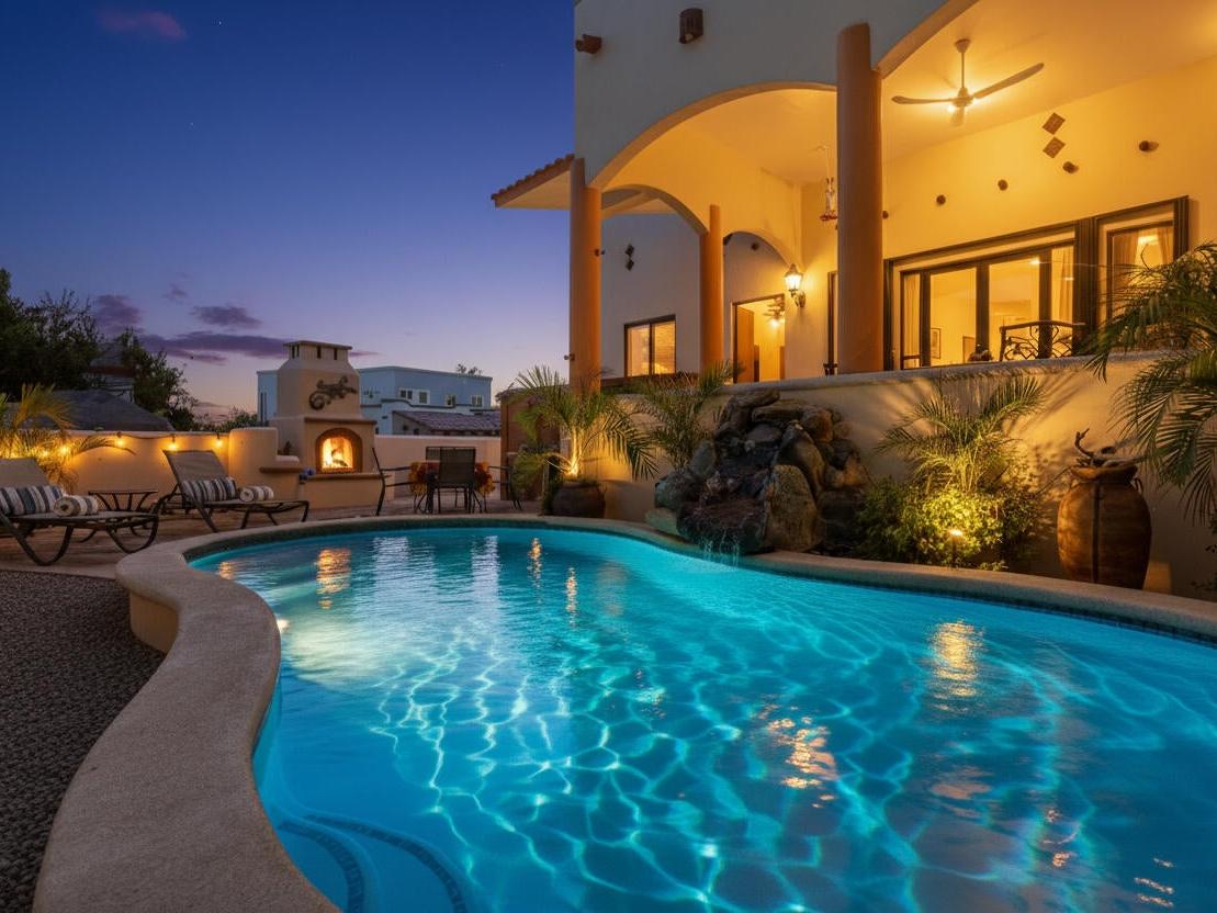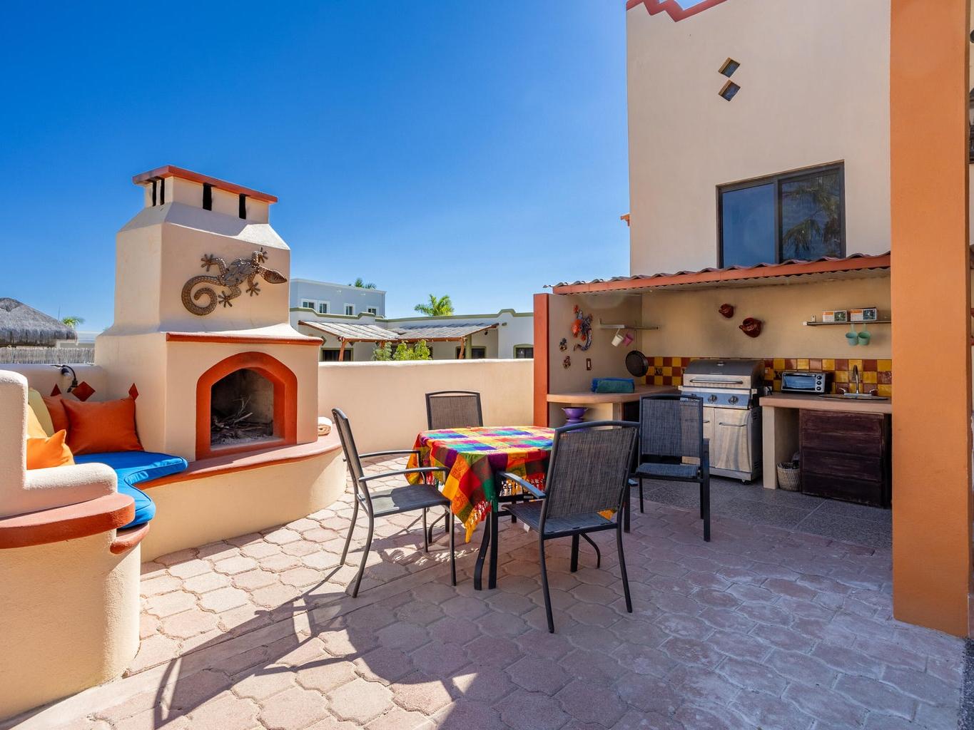 Casa Fenix is a thoughtfully designed property just a mile from downtown Los Barriles, offering privacy, comfort, and convenience. The main home features one spacious bedroom and an additional flex space with a full bathroom that can serve as a guest room or office. The open-concept living area and kitchen are filled with natural light, featuring custom wood cabinetry, a breakfast bar, and stainless-steel appliances.