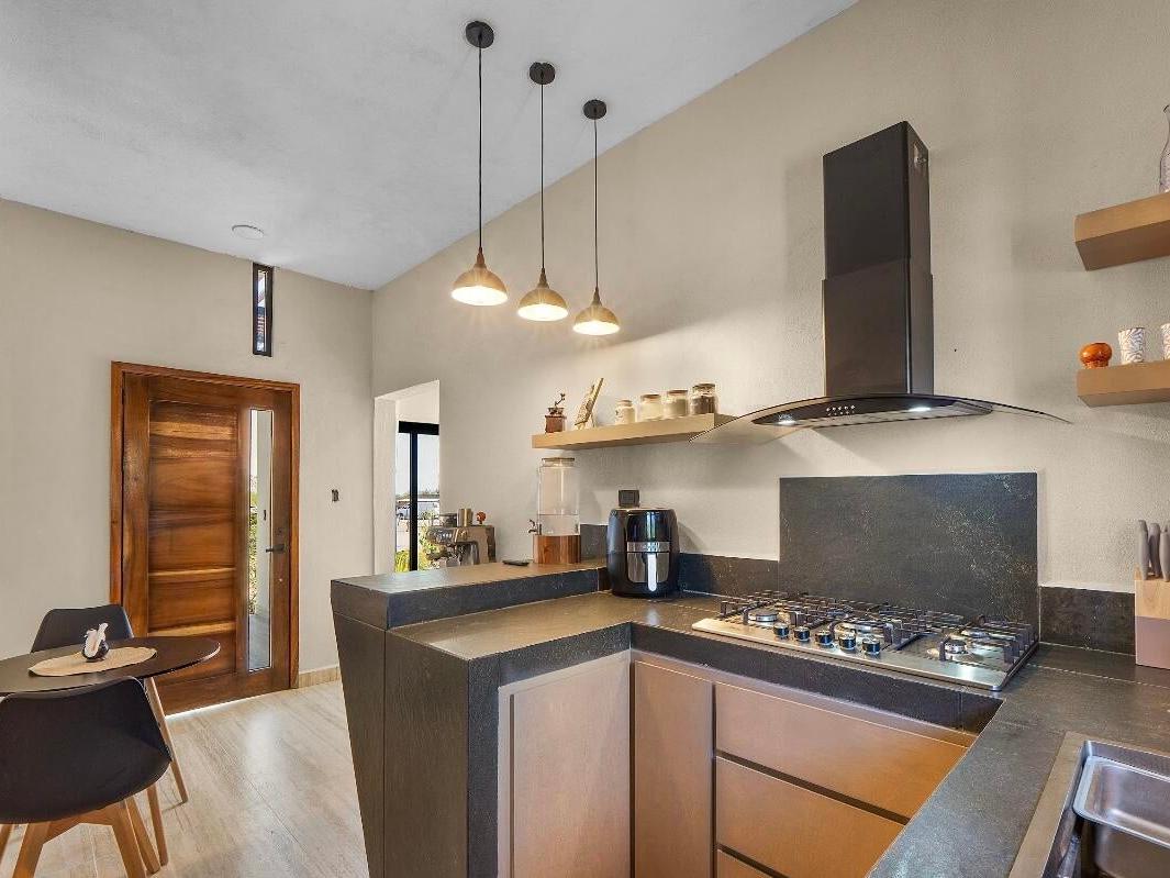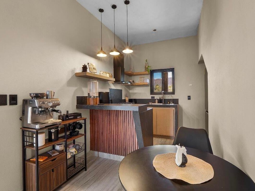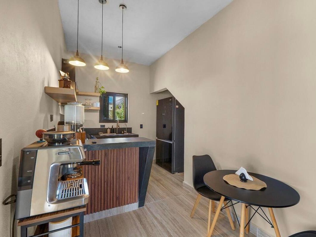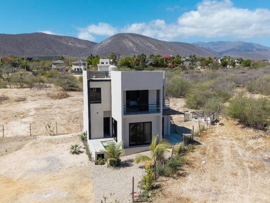 Casa Antara, located off the El Ancon Road is a newly built, two storey home completed in 2024. This 2 bed 2 bath contempory style home is partially furnished leaving room to decorate as desired. Travertine floors through out and parota doors. The main floor is bright and an open studio floor plan with a full bath. The upper floor with the primary bedroom and large walk-in closet and bathroom, including a soaker tub. Perfect for guests or as the main bedroom. A small plunge pool located outside the main floor is perfect for cooling off. The large lot offers room to add additional casitas, a garage and offers lots of parking for RV's or boats.