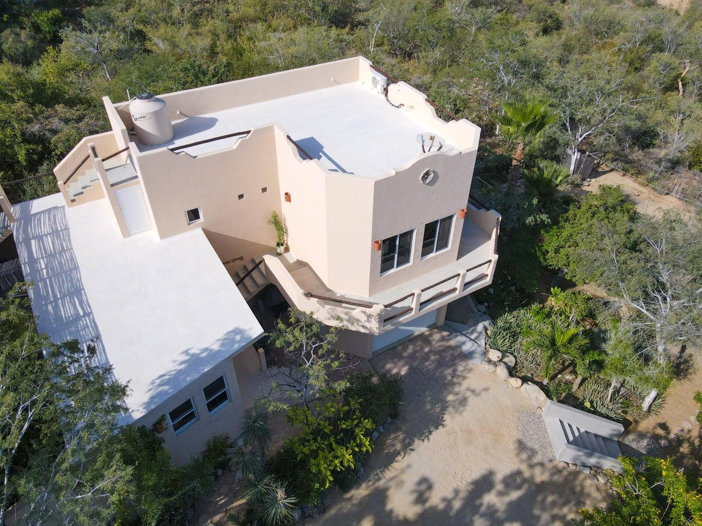 Casa Marroyo is a warm and inviting retreat set in a private location with breathtaking views. Just a 15-minute walk or a 5-minute drive to downtown Los Barriles, the home offers both seclusion and convenience. Upon entering the front patio, you'll find a fully renovated 1986 classic 31-foot aluminum motorhome, thoughtfully converted into a unique guest bedroom. The main living spaces are comfortable and well designed, flowing seamlessly through multiple levels and surrounded by beautiful, mature gardens that enhance the peaceful atmosphere.