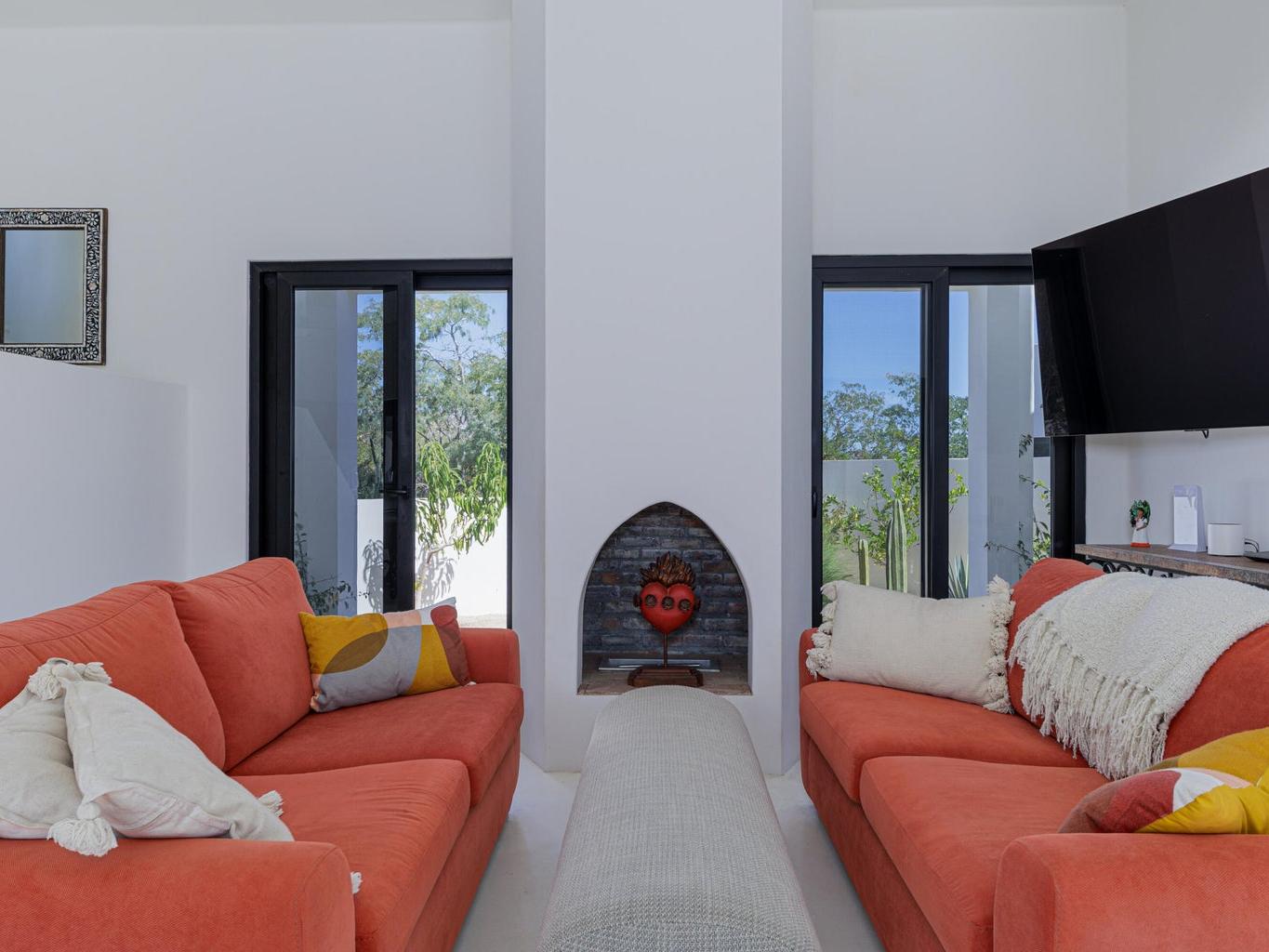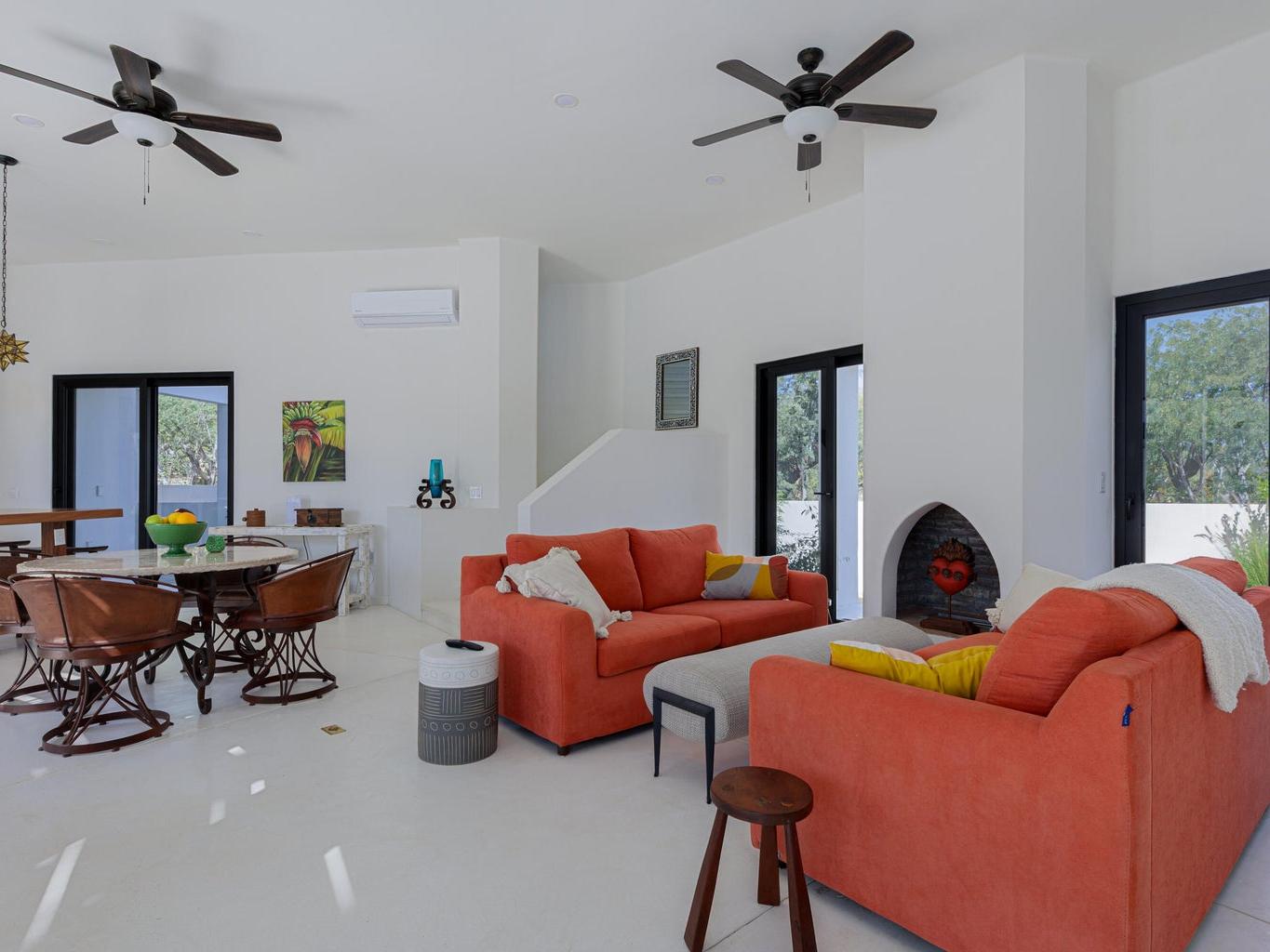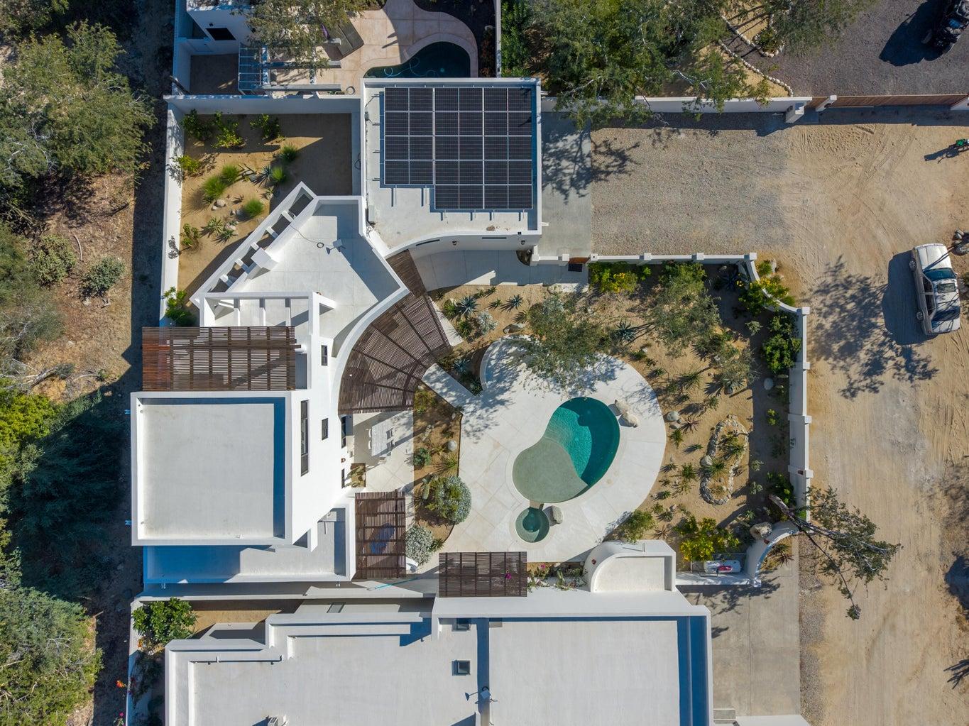 Modern newer build 3 bedroom, 2 bath home with a bonus room and a 2 car garage just minutes north of downtown Los Barriles. Located on a quiet cul de sac with a gated entry. This home has many new upgrades including a huge 3rd story bonus room with incredible views of the ocean to the east and mountain views to the west. Perfect for an art studio, office or gym/yoga room. Just outside the bonus room, is a covered deck to enjoy the spectacular views of the Sea of Cortez. Beautiful upper kitchen parota custom cabinets, Solar with battery backup. Full house water filtration system that includes a reverse osmosis remineralization system under the kitchen sink for drinking water. Oversized 2 car garage to store your vehicles and everything you need for your active Baja lifestyle. Meticulously