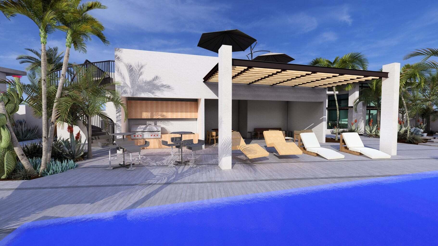 Primo Palma features six architect-designed, modern casitas thoughtfully arranged as a boutique residential community in central Los Barriles. Each two-bedroom residence showcases contemporary Baja design, warm natural finishes, and effortless indoor-outdoor flow. Just steps from town amenities and minutes to the beach, residents enjoy a relaxed yet connected lifestyle enhanced by a pool, hot tub, firepit, and rooftop BBQ lounge framed by desert landscaping.