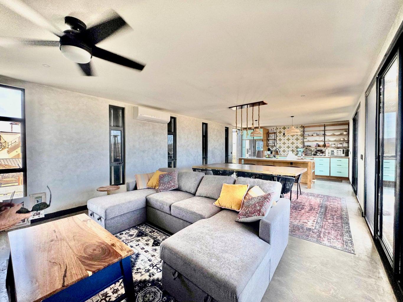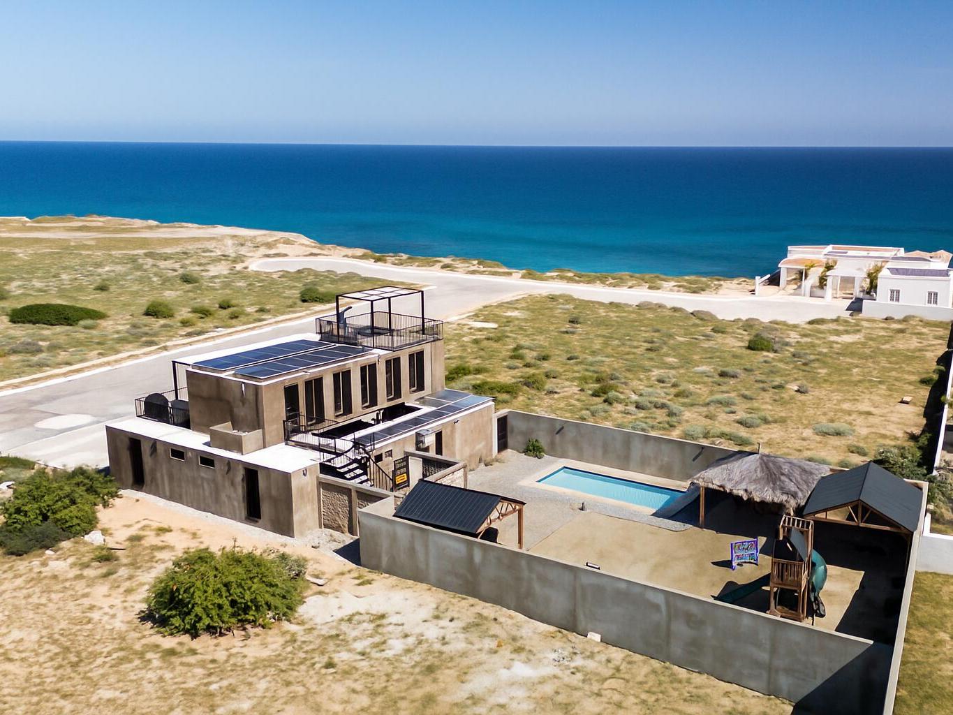Experience Confort & Modern 4-bedroom container villa showcasing panoramic views of the Sea of Cortez and a seamless indoor-outdoor design. ----