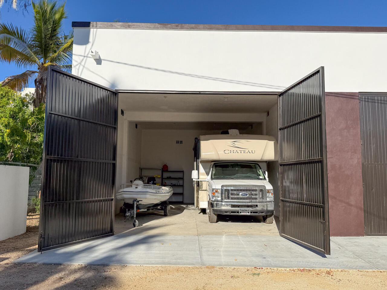 Each garage foundation will hold a 2nd story casita. Water and power already pulled to lot. Property is fenced on 3 sides. Walk around entire property - space is wide enough to drive ATV around parameter Undeveloped area on Delfin side of property with room enough for a home. Make an appointment to come see this outstanding 3 boat garage property. Water cistern in 3rd garage floor holds 5,000 ltr or 1,320.90 gal.