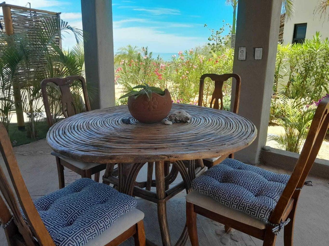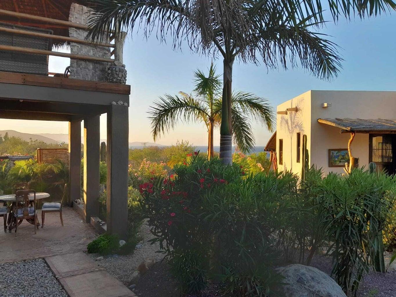 A rare opportunity in Spa Buena Vista! Casa Tanya combines two beautiful homes into one listing, ideal as a family compound, vacation retreat, or investment property. Both homes offer privacy, lush landscaped grounds, and stunning ocean and mountain views, just steps from the beach. The main residence features 2 bedrooms and 2 bathrooms with open indoor-outdoor living spaces, while the second home also offers 2 bedrooms and 2 full bathrooms for guests or flexible office space. Together, they provide multiple living options or rental potential. Located on a peaceful cul-de-sac, with easy access to scenic hiking and biking trails and a vibrant local community, this property captures the very best of Baja living.