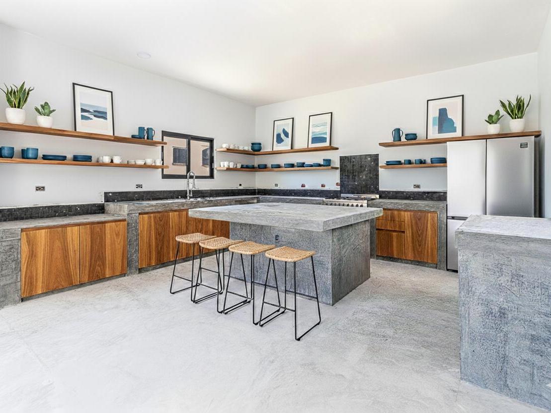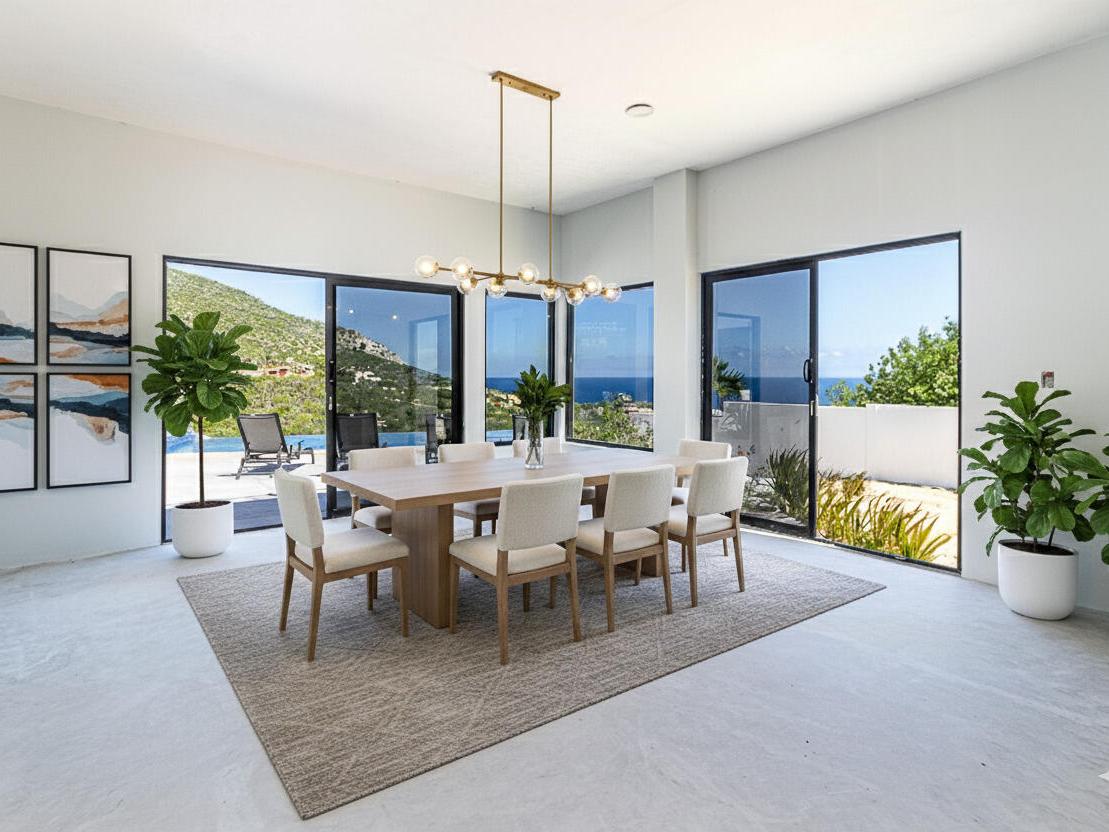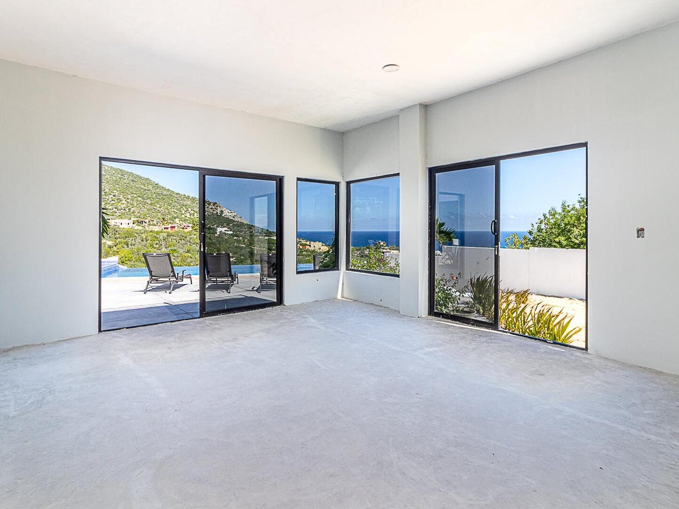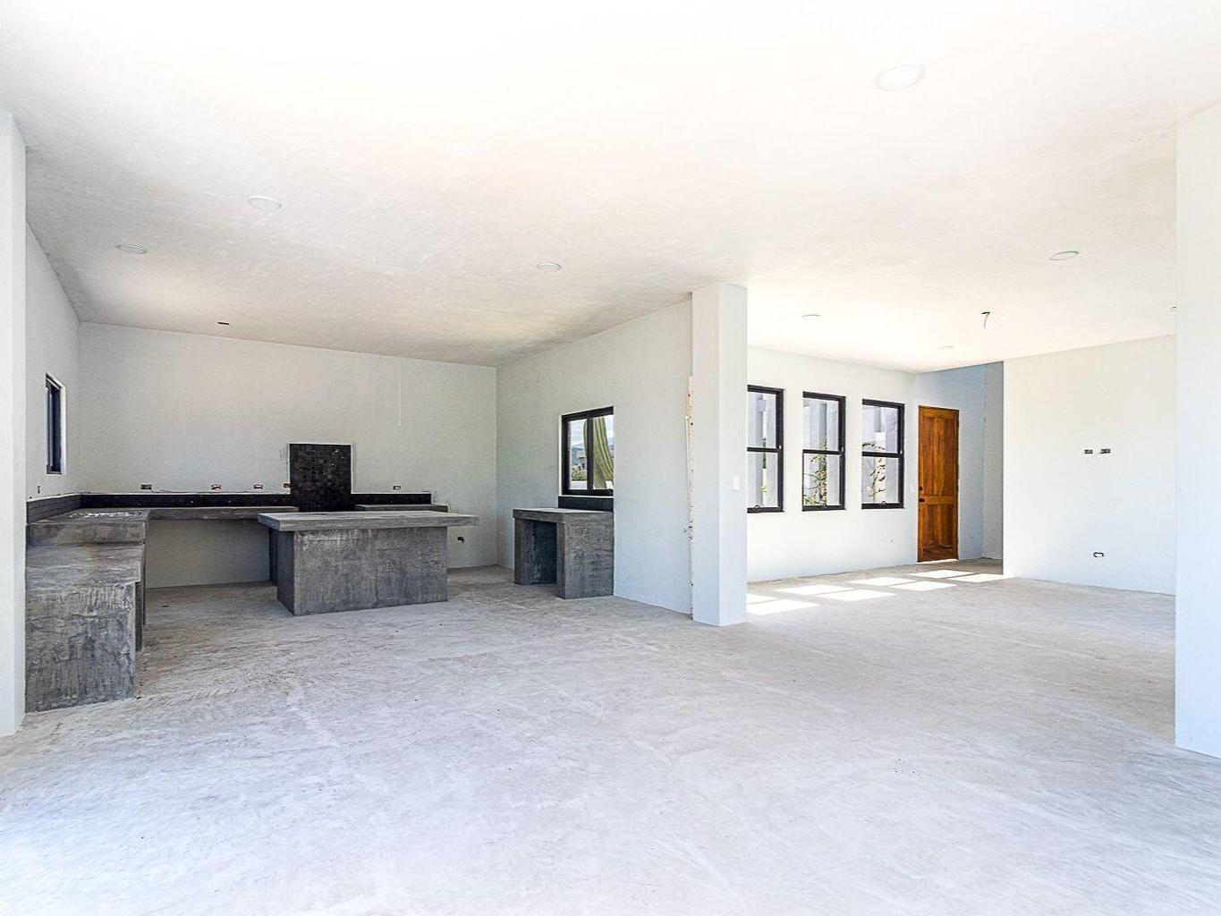 Highland House offers a premier customizable opportunity to finish a luxury home to your exacting standards, perfectly situated for breathtaking Sea of Cortez views. This modern residence features a finished one-bedroom casita for immediate use, alongside a substantial, unfinished three-bedroom main house. The exterior is complete with a stunning infinity-edge pool, spa, and fire pit lounge. The main house boasts an open-concept design and a concrete structural core ready for personalized finishes, promising a high-value personal retreat or prime investment property in the desirable Los Barriles area.
