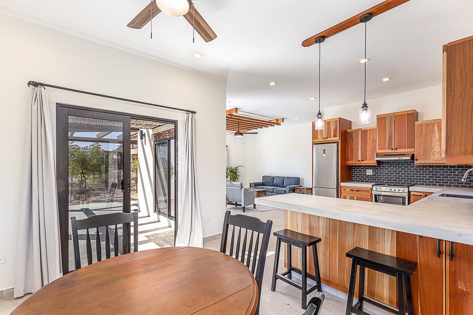 This stunning single-level new build 2 bed/2 bath off grid single family home is the only home of this caliber available in the quaint East Cape community of Zacatitos,located just 15 mins from the picturesque town of San Jose del Cabo. This contemporary home is nestled on a quiet cul-de-sac with desert and second story ocean views, open plan kitchen/living/dining, two private terraces, state of the art solar system, two car garage, laundry hookups, 6000gln water pila, roughed in plumb/elec for 3rd bed suite upstairs, room to add pool and/or small casita for add'l rental income potential, and a short walk to Zac's Bar & Grill and pristine beach.