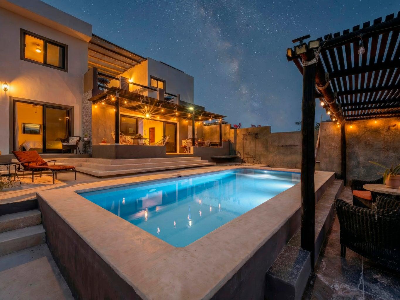 Baja Surf House is a striking contemporary home located in the peaceful East Cape community of Zacatitos, where desert landscapes meet pristine beaches. Built in 2023, this 2-story residence blends modern comfort, sustainability, and effortless indoor-outdoor living — making it ideal as a full-time home, vacation retreat, or high-performing investment property.