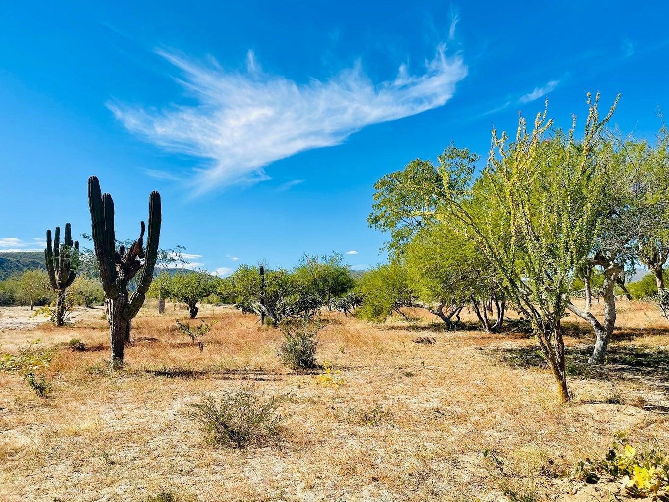 Colina del Sol is a very popular country setting subdivision with lots of established native landscaping with huge cacti, Palo Blanco and Elephant trees. It's quiet, protected from the elements and has a very appealing feel. Mountain views in both directions and Ocean views from a second story.It's close to town, beaches, restaurants, etc. yet feels like country living. The lots are all huge 1500 sq mts., lots of room for all of your creative designs and don't forget your toys. Come build your Baja dream.