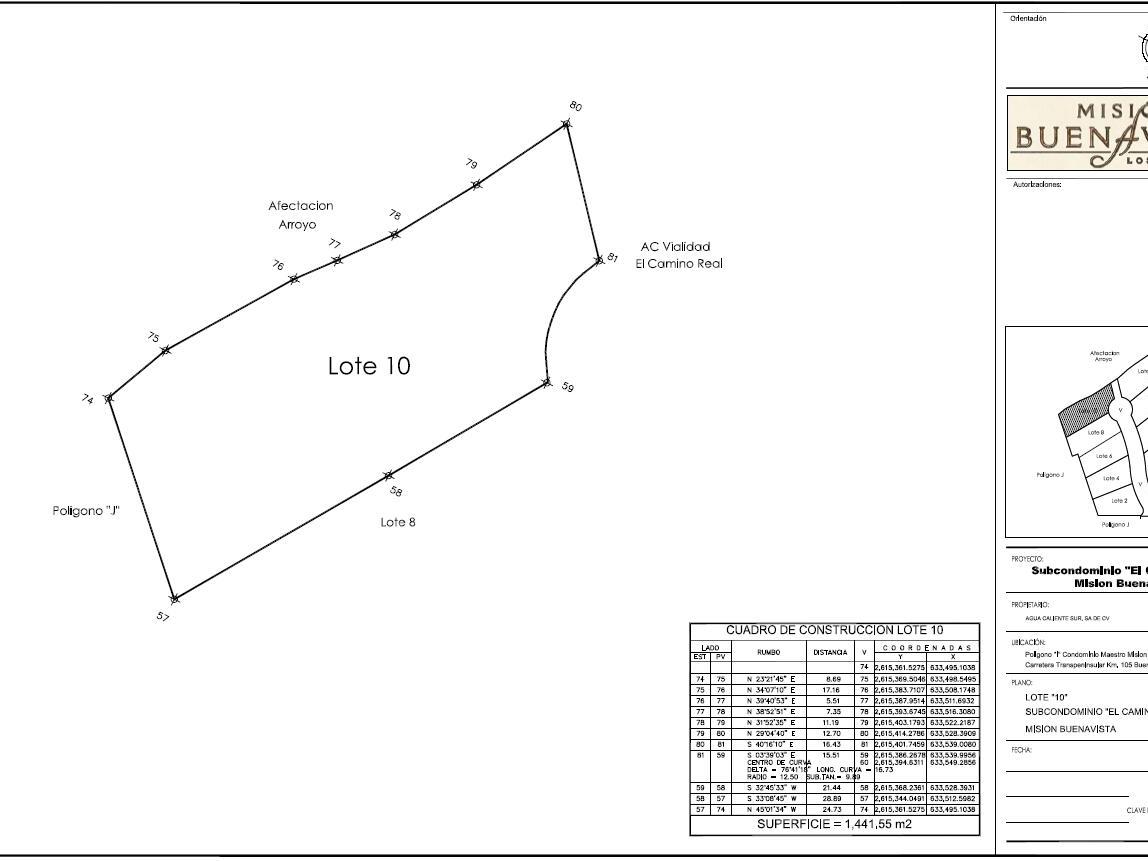 Located in the master-planned community of Mission Buena Vista, Lot 10 offers a rare opportunity to own a large parcel of land on the East Cape of Los Cabos with infrastructure already in place. The 1,441.55 m² lot features paved road access, along with water and electricity available at the property—an important advantage in an area where many properties depend on solar power and trucked-in water.