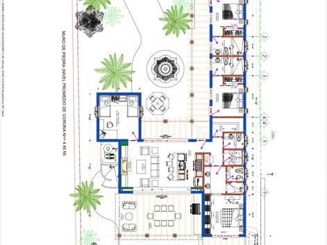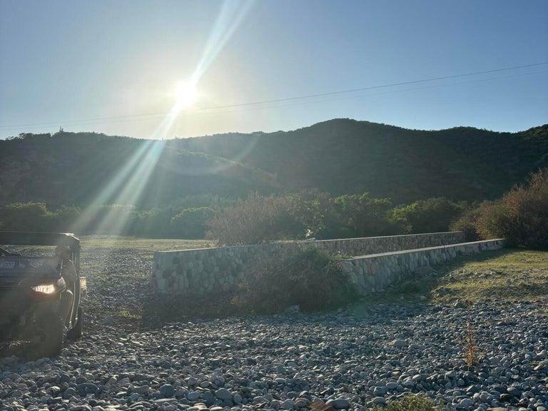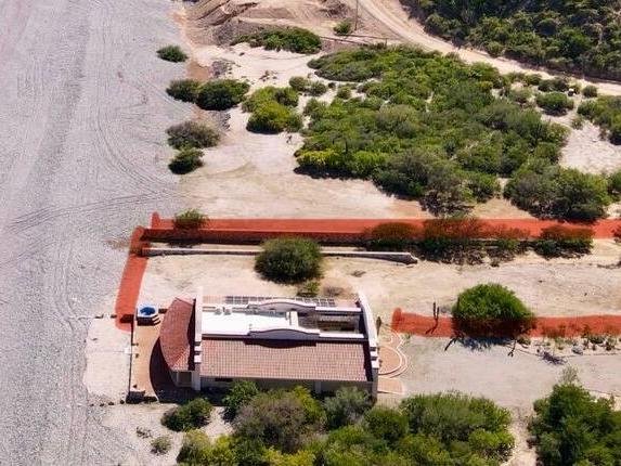 Level lot with existing retaining wall. Elevated above sea level. Located on the upper side of the arroyo.