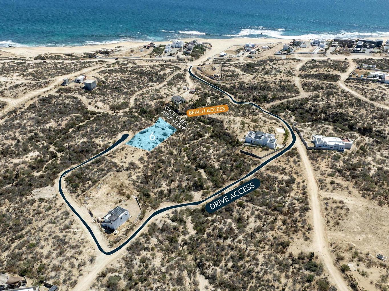 Located just 1 mile from the paved road in a private cul-de-sac, Lot 6 offers a premium, highly accessible location in the growing East Cape. What sets this specific 1,132 square meter (over 1/4 acre) lot apart is the designated green area directly adjacent to the oceanside, ensuring protected sightlines, enhanced privacy, and unobstructed ocean breezes.