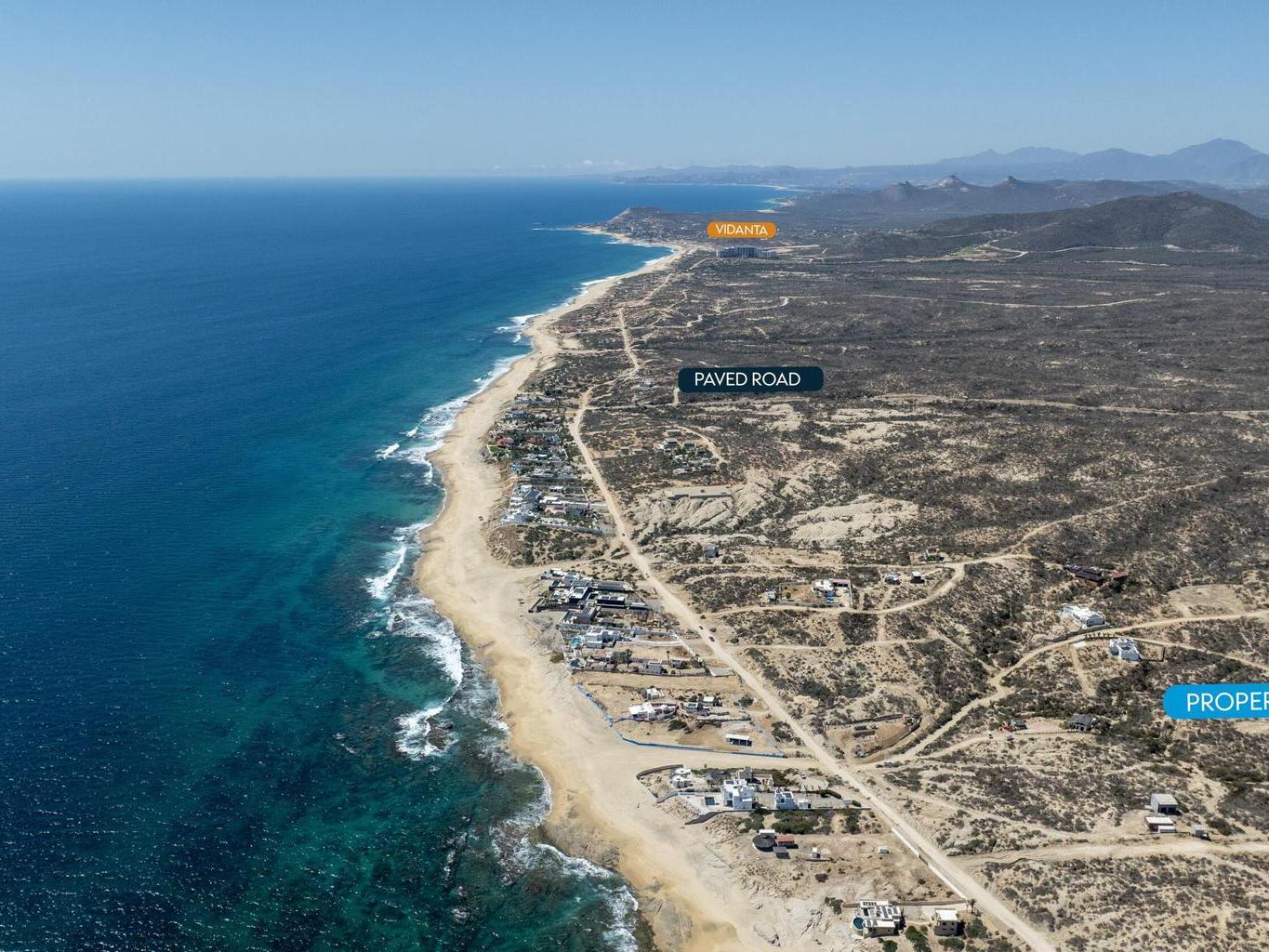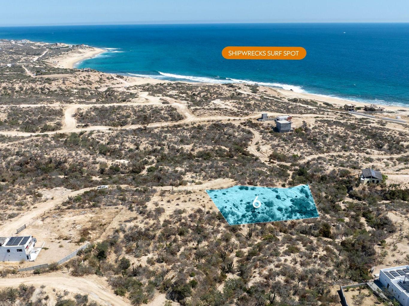 It is an easy 30-minute drive from San José del Cabo to this flat, elevated build site. You are just a 350-meter (approx. 1,150 feet) walk to a secluded beach and 1.5 miles from the Shipwrecks surf break. Adjacent Lot 5 is also available, offering a rare opportunity to purchase both and assemble an over half-acre private compound.