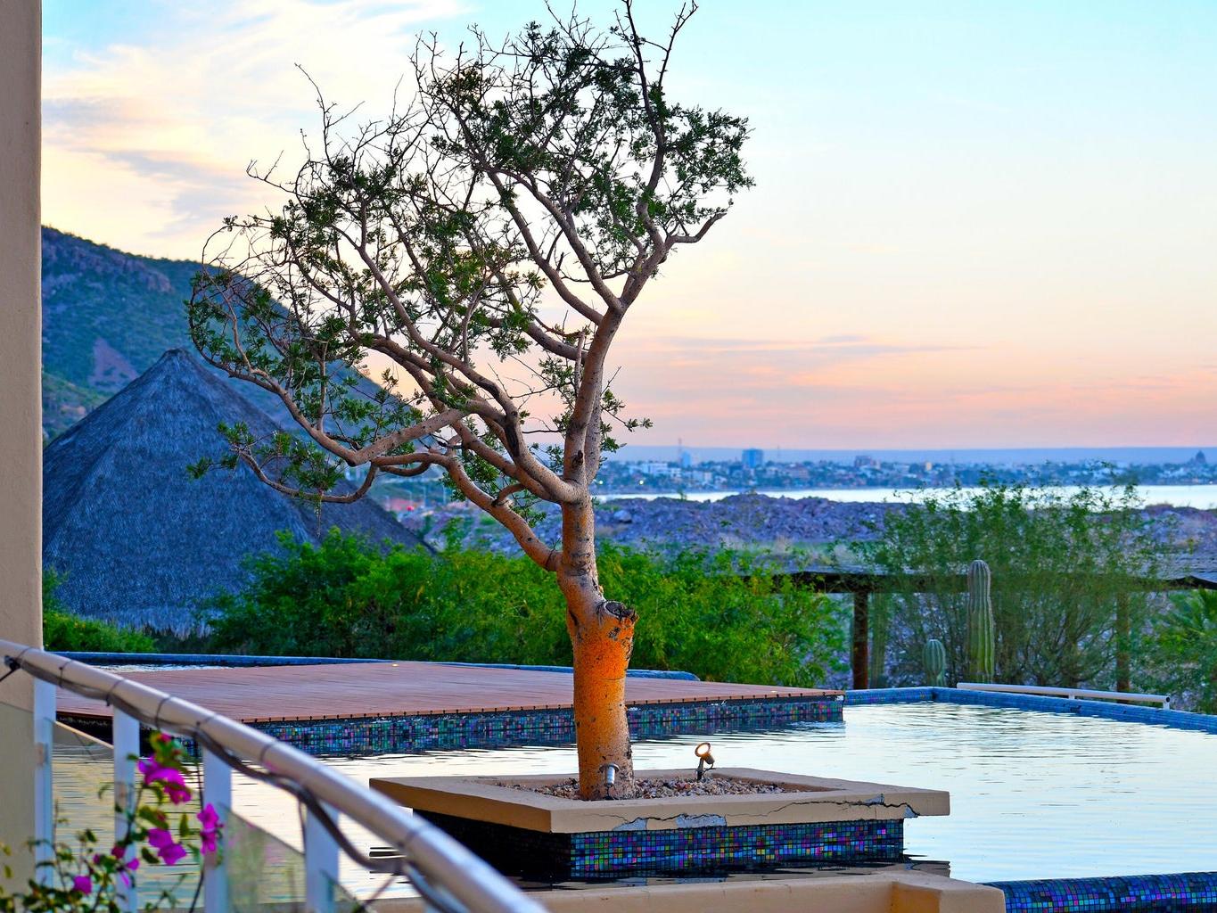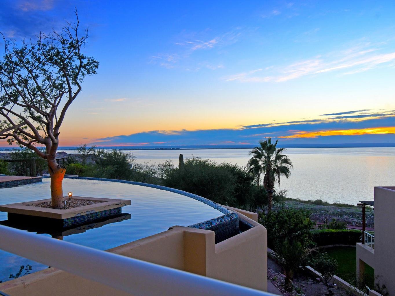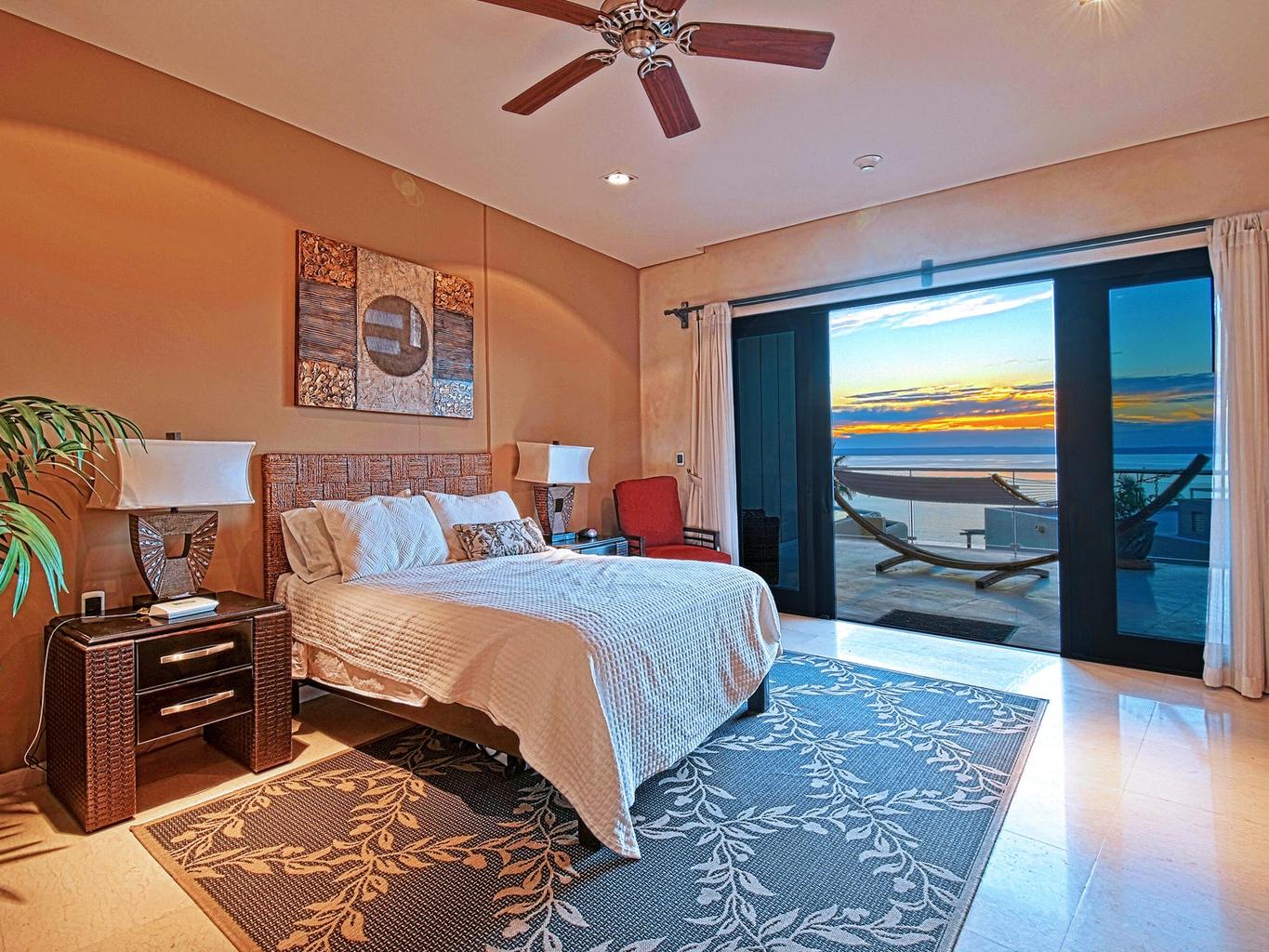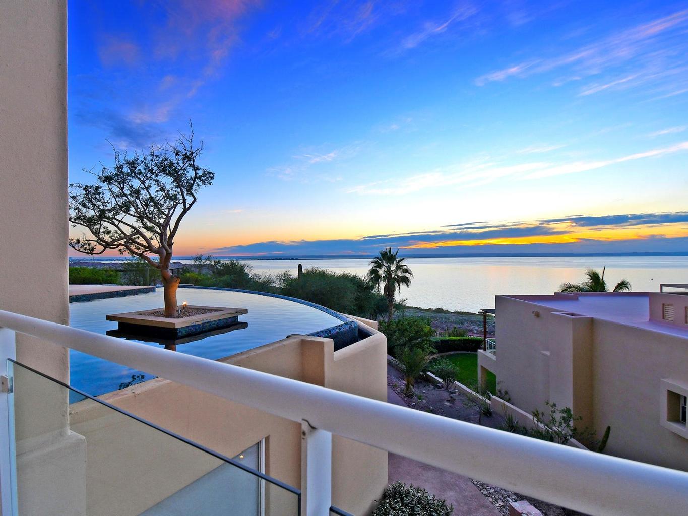 Large sliding doors connect the living area to a spacious terrace, perfect for outdoor dining and relaxing while enjoying open views of the pool and the turquoise Sea of Cortés.
