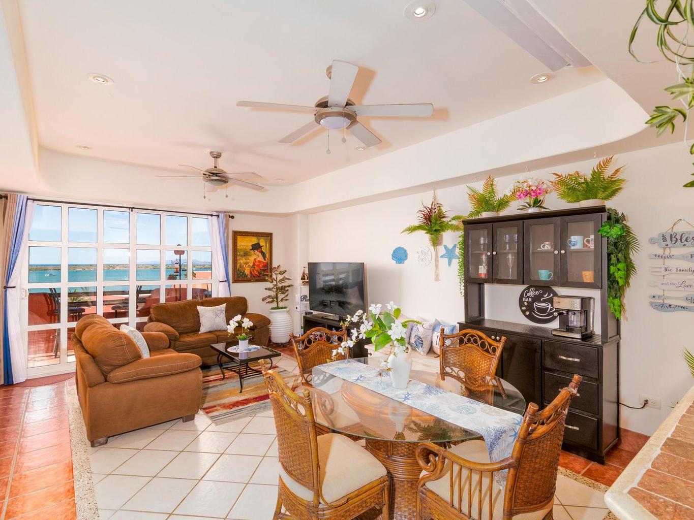 Discover this beautiful turnkey 2 bedroom, 2-bathroom condominium located in the highly sought-after La Posada area. This full ocean-view condo is just steps from the beach and only two blocks from the bike path, which leads you to the La Paz Bay boardwalk in under 15 minutes.
