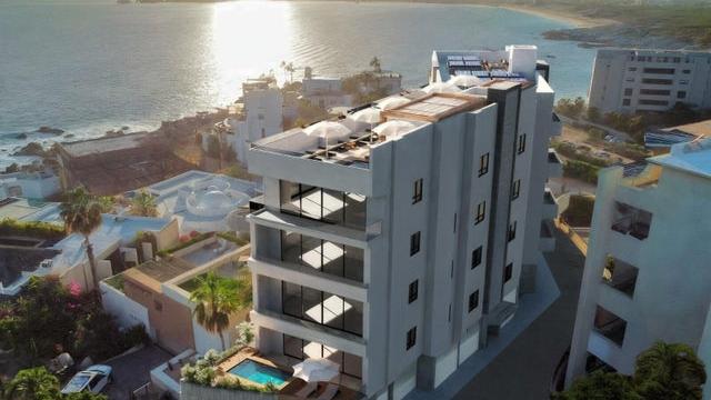 Bienvenidos! Welcome to your oceanfront oasis, where serenity meets elegance in this stunning beach apartment. This coastal retreat offers an unparalleled lifestyle, with panoramic views of La Paz Bay and direct access to the sand from your doors. Contemporary design and high-end finishes combine to create a luxurious and welcoming atmosphere. It's the perfect place to relax and enjoy the stunning ocean views, with an open concept layout that flows effortlessly into the dining room and gourmet kitchen. Enjoy the outdoor lifestyle where you can delight in stunning sunrises and sunsets or simply relax while listening to the sound of the sea.