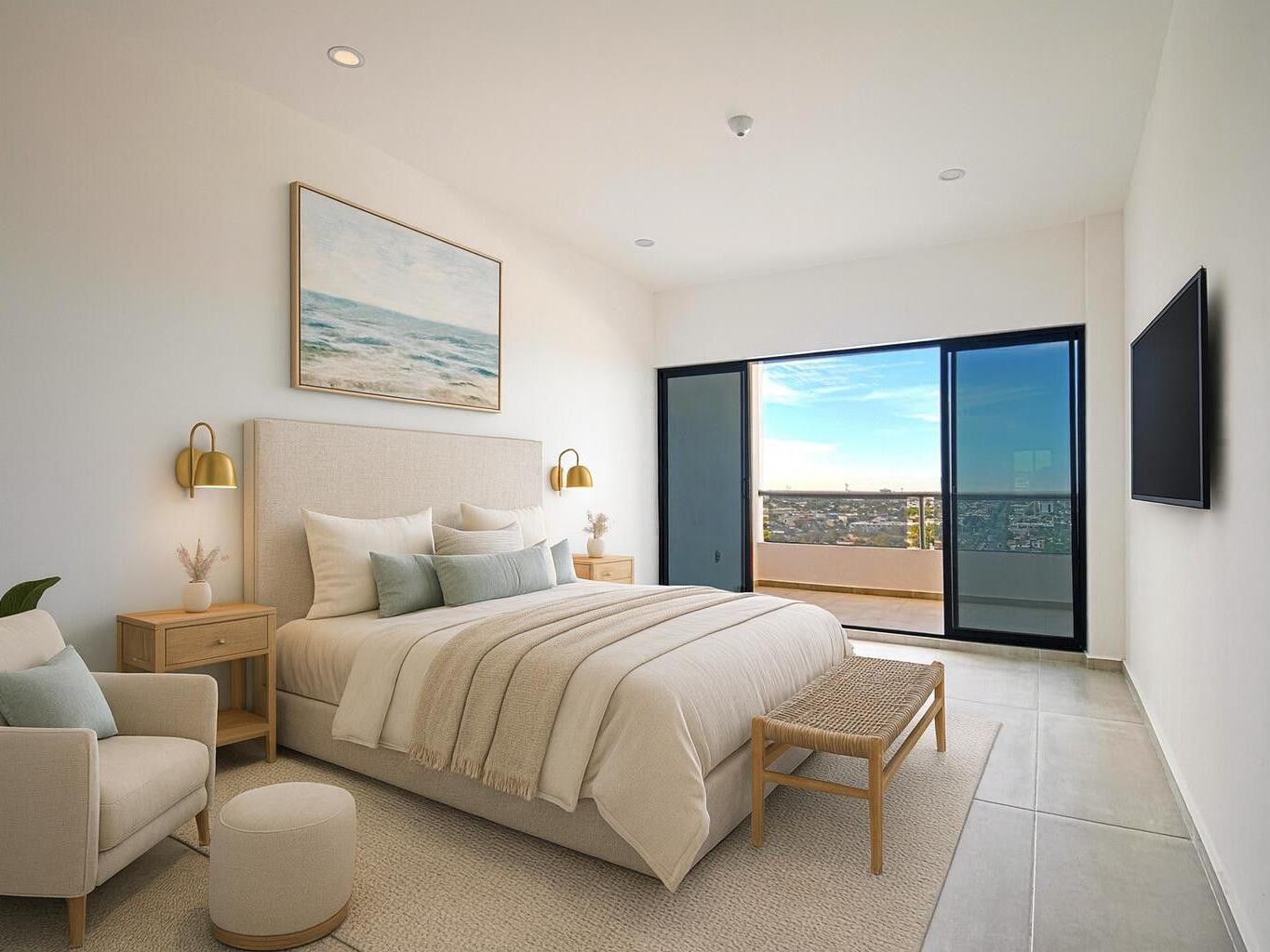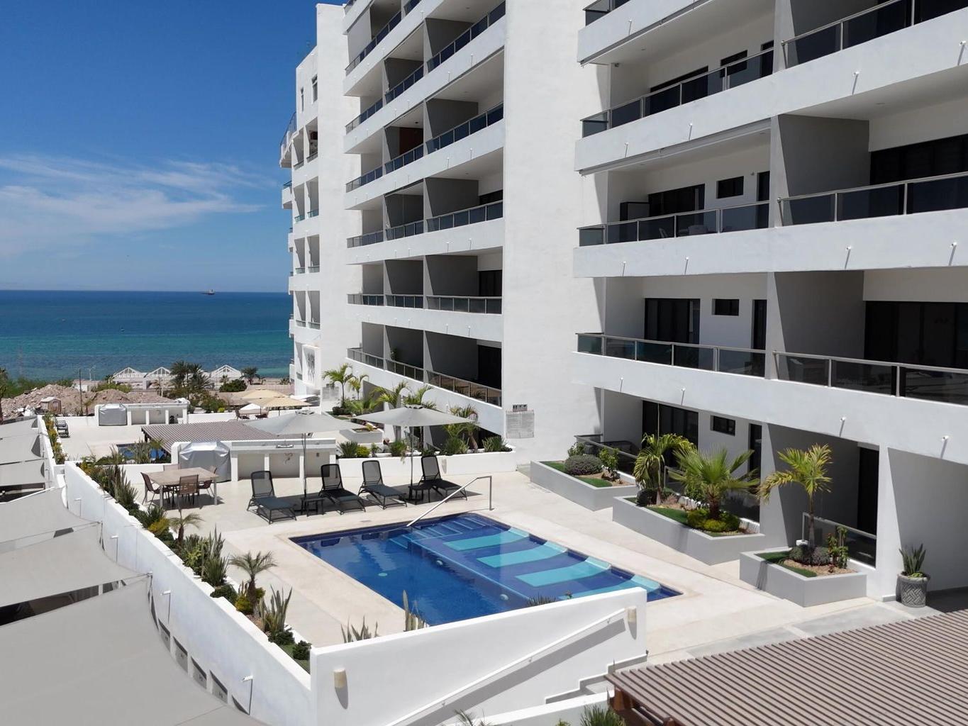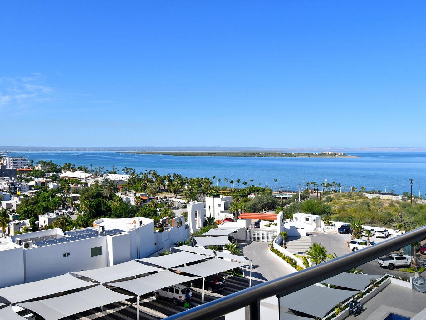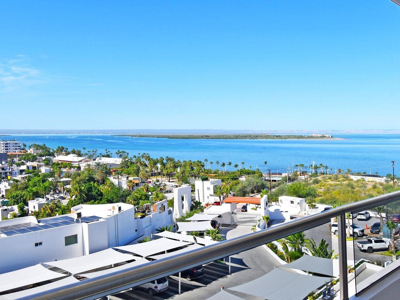 This beautiful 2-bedroom, 2-bathroom condo offers bright, open-concept living with a spacious kitchen, dining, and living area—all with spectacular views of the Bay of La Paz from every room. Step out onto the large terrace and take in the sunsets and sea breeze—it's the perfect spot to relax or entertain.
