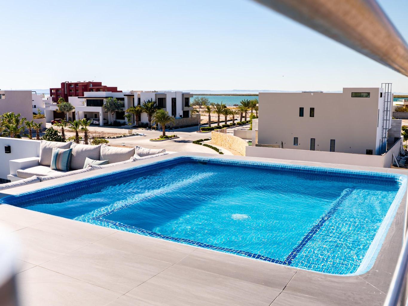 Contemporary luxury residence featuring clean, elegant design and high-end finishes throughout. This property offers 3 spacious bedrooms and a 6-car garage, ideal for collectors or car enthusiasts. Includes a private in-home apartment with its own living room and kitchen, perfect for guests or extended stays. Designed for comfort and entertainment, the home features a rooftop pool with panoramic views, hot tub jacuzzi, outdoor barbecue area, and elevator access to all levels. A fully equipped gymnasium adds to the lifestyle appeal. Exceptional layout combining privacy, functionality, and modern sophistication in every detail.