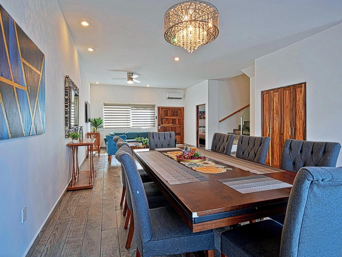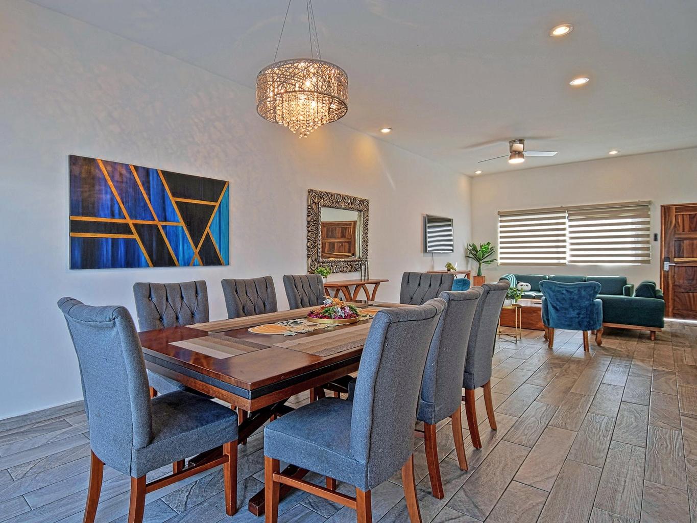 Casa Angela is a spacious ocean-view home located in the gated Torres Cantera community, just a two-minute drive from La Paz's Malecón. This two-story residence features 5 bedrooms and 5.5 bathrooms, offering plenty of space for family living, guests, or rental use.