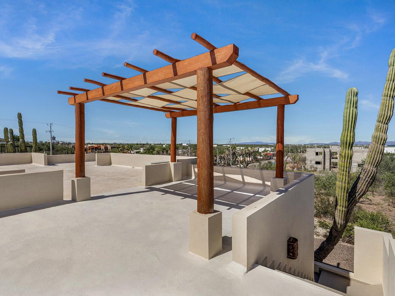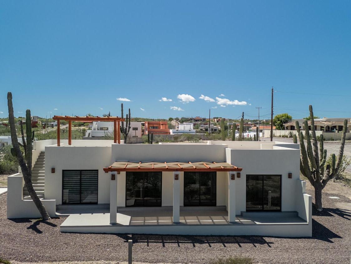 Live the Baja dream at Casa Pescador! This single-level home blends comfort and possibility on an expansive 800m² lot in one of La Paz's most desirable neighborhoods. Designed with functionality in mind, it offers two master suites with walk-in closets and full en-suite bathrooms, open-concept living, and a fully equipped kitchen. Step outside to a private pool and generous patio space, perfect for enjoying Baja's warm, sunny days. Head up to the ocean-view rooftop with pergola for evening relaxation and cool breezes.
