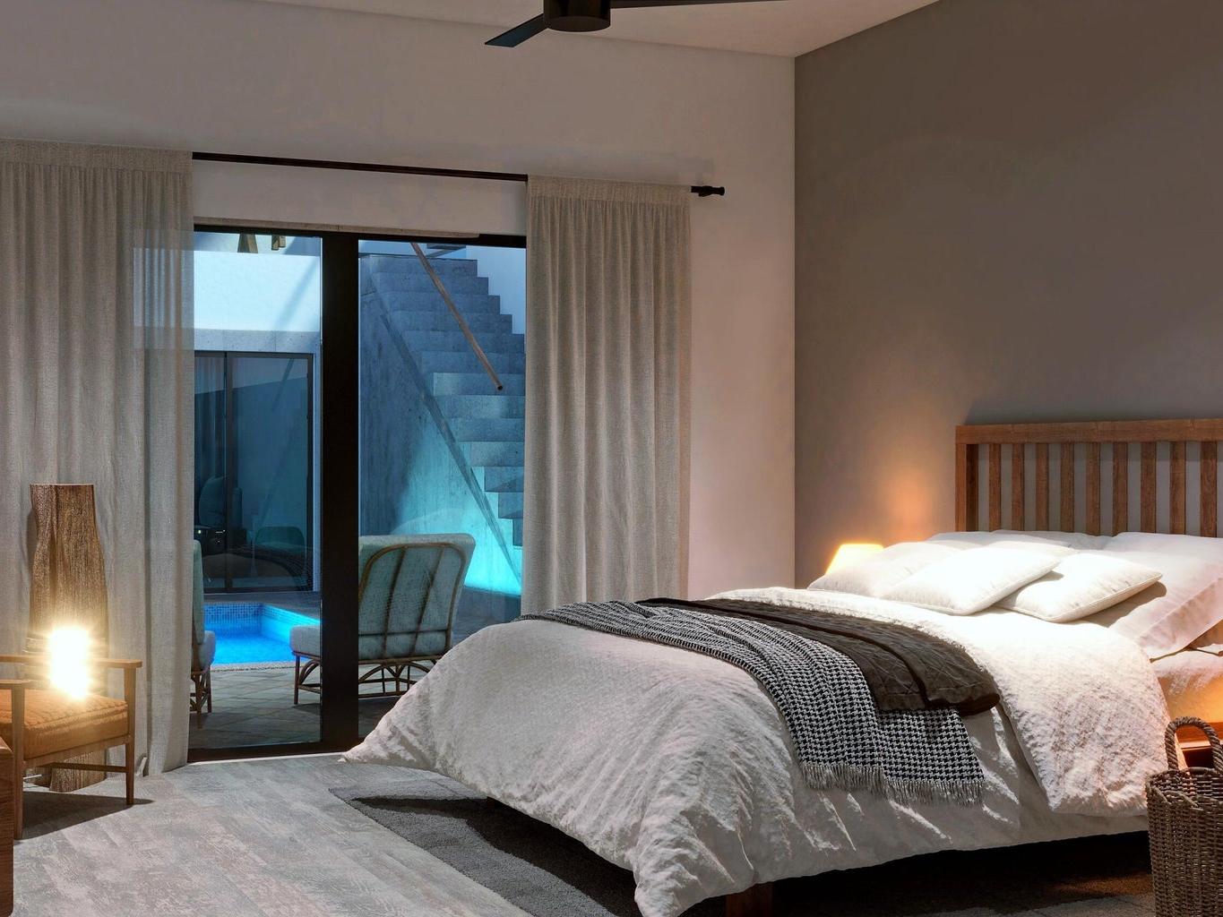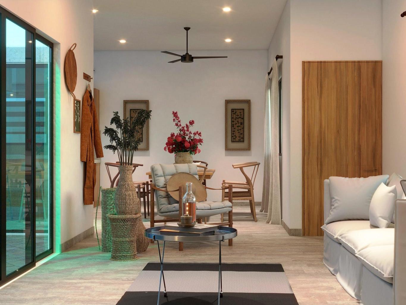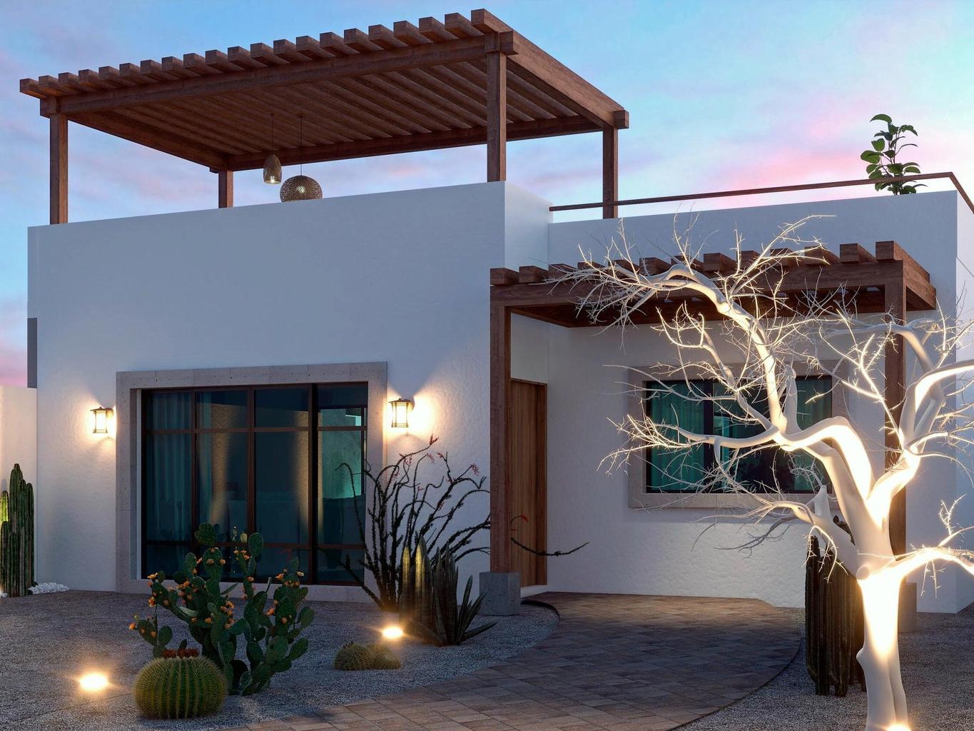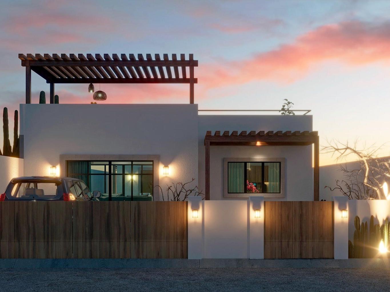 This brand new single story home check all the boxes! Located in the desirable and peaceful community of el Centenario just minutes from downtown La Paz and very close to El mogote and Comitan Beach. Every bit of the layout in this house was thought to offer its residents a relaxed life style with an open concept perfect for entertaining your friends and generous indoor spaces, full of light featuring large windows with a view to its central patio from almost every point of the house just like a Mexican Hacienda home. Access to a beautiful rooftop terrace comes standard as we know Centenario offers the best skies full of stars, full moon over the desert and sunsets.