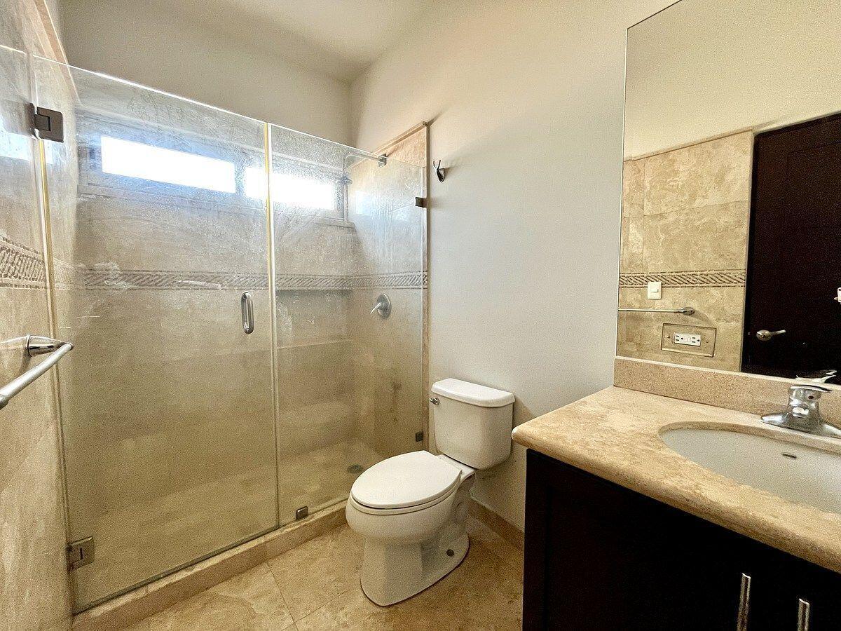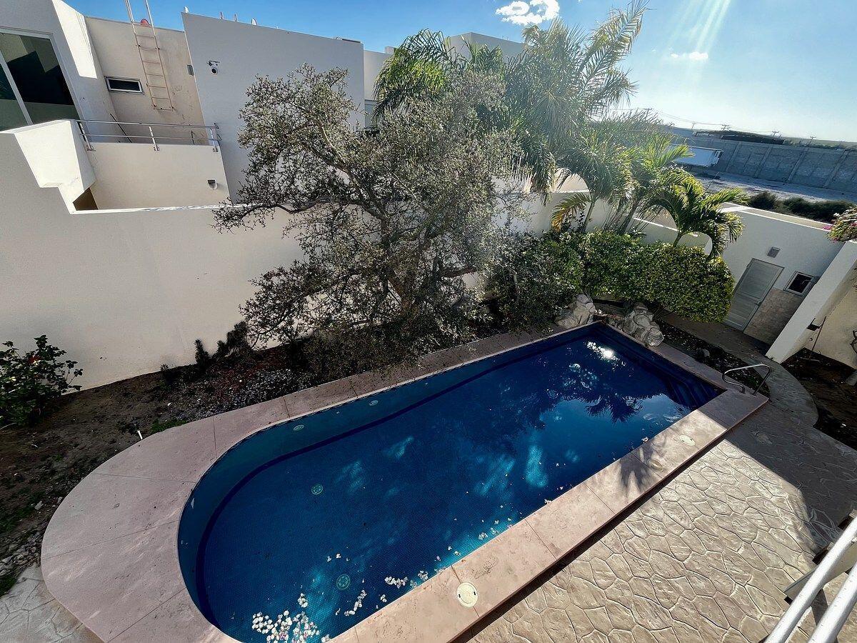 Two-story residence located in Colonia Chametla, within Residencial Puertazul, in La Paz. Built on a 601.75 m² lot with 360.72 m² of construction, the property offers spacious indoor and outdoor areas. It features 3 bedrooms, each with a full bathroom, a primary bedroom with a walk-in closet, living and dining areas, a high-quality kitchen, and an exterior bathroom for the social area. The outdoor area includes a large swimming pool, terrace with a view, and a spacious patio. It also includes an independent rear room with a bathroom and private access, ideal for guests or an office. Secure and private property, ideal for living or investment.