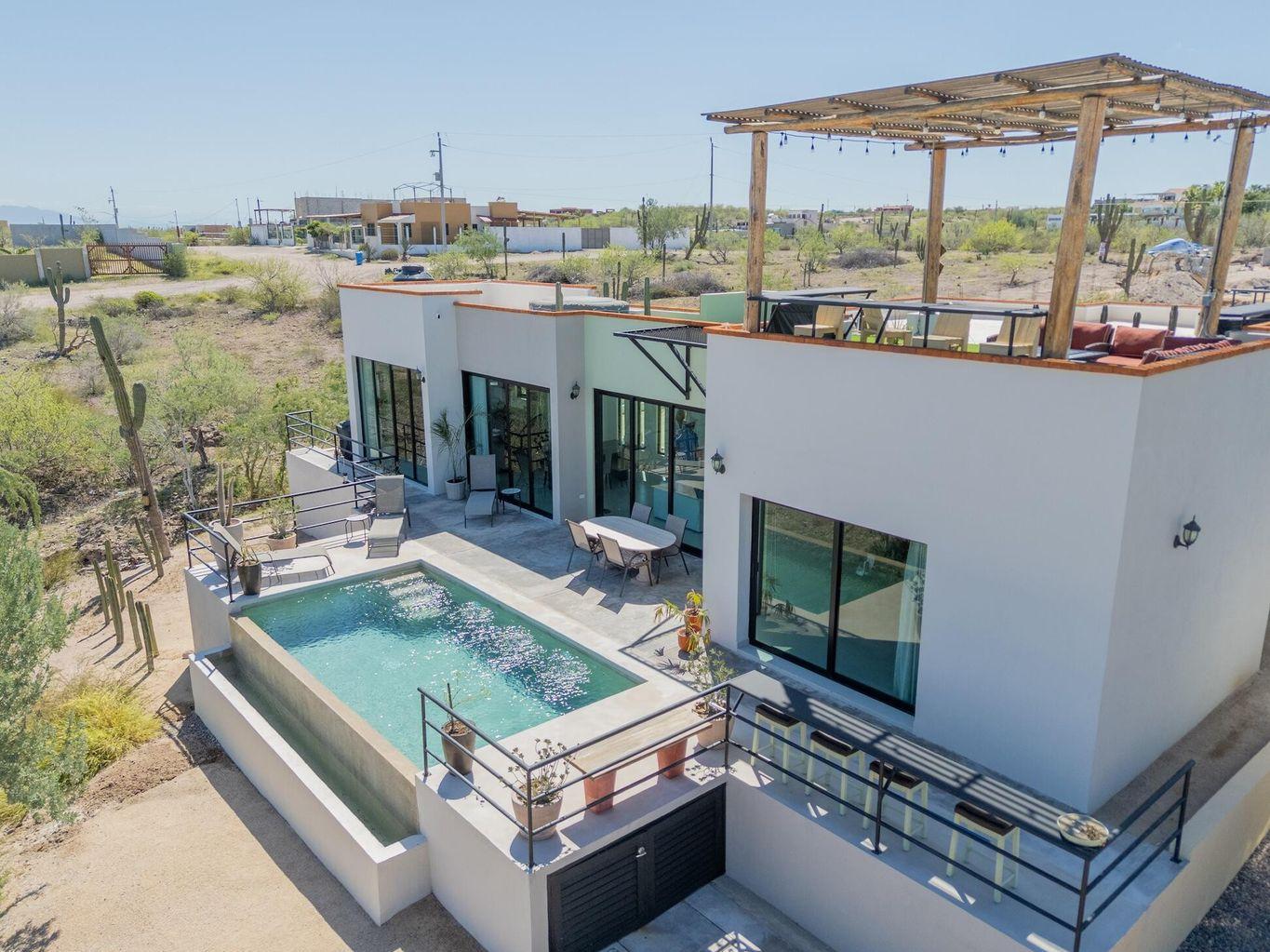 Welcome to Casa Refugio! This 3BR/2BA home sits on a 420 m2 ocean view lot in the hills of El Centenario and features 1,657 ft2 of interior space and a beautiful 10ft x 20ft pebble-tec infinity edge pool, an open living/dining/kitchen area with plentiful sliding glass doors, and a finished rooftop entertaining deck with fire pit and shade pergola offers amazing sunsets and star gazing. The spacious master suite opens to the pool/patio and has a huge walk-in closet and en-suite, and two other bedrooms and a second full bathroom offers plenty of room for guests. The kitchen has stainless appliances, granite counters, custom cabinets, natural stone backsplash, and a separate laundry room just off the kitchen. The house is kept in immaculate shape, come take a look!