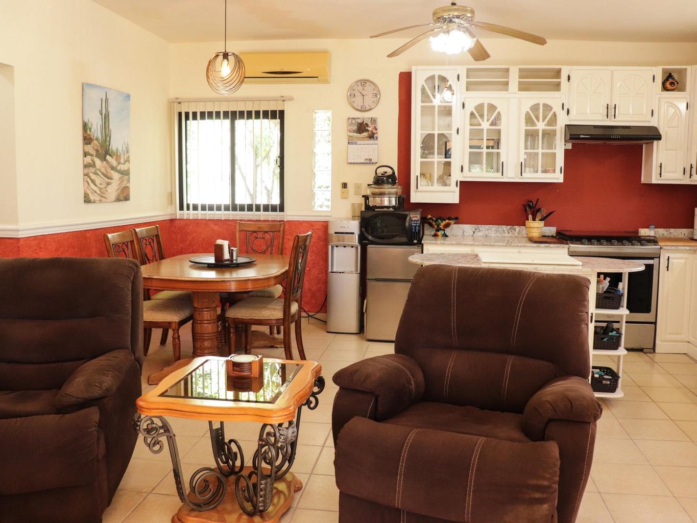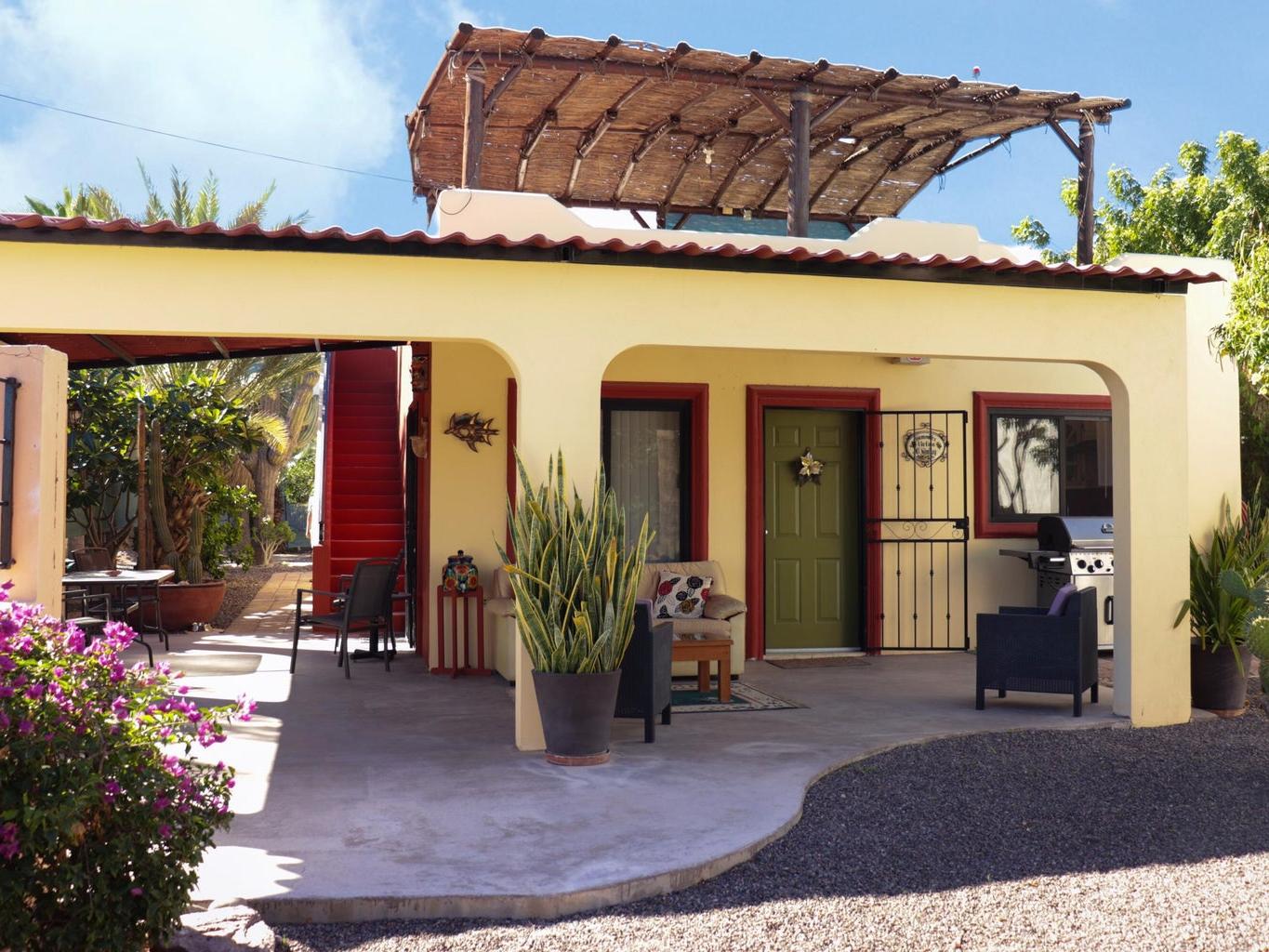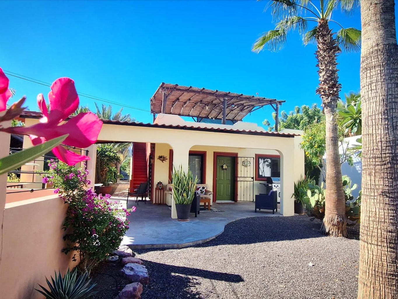 This inviting 2-bed, 2-bath home in El Centenario is a great match for buyers seeking comfort, style, and value. Nicely maintained and offered fully furnished, this residence is move-in ready from day one. Sip your morning coffee and watch stunning sunrises with Bay views from your private rooftop terrace. The large, fully fenced and walled lot showcases mature trees and landscaping, shaded parking for three vehicles, and plenty of outdoor seating for gatherings. A versatile mini-garage offers space for your ATVs, storage, or a workshop. Comfortable, practical, and charming, this property delivers outdoor living, privacy, and convenience all in one—perfect as a full-time home, vacation retreat, or investment.