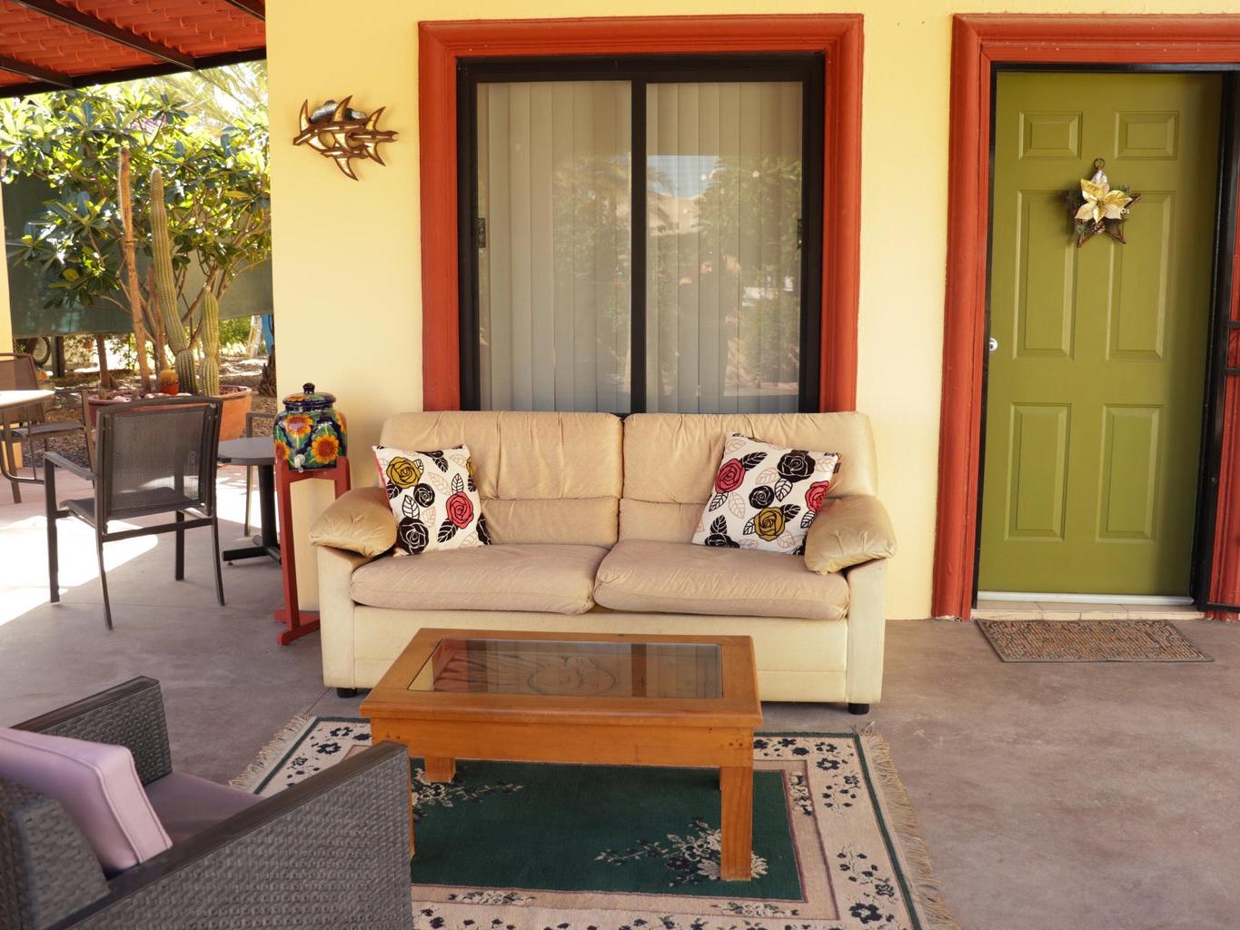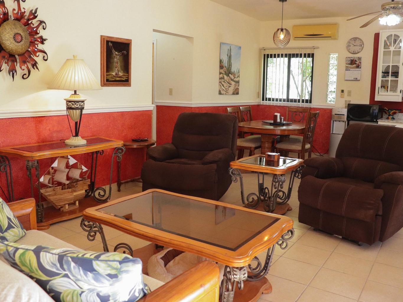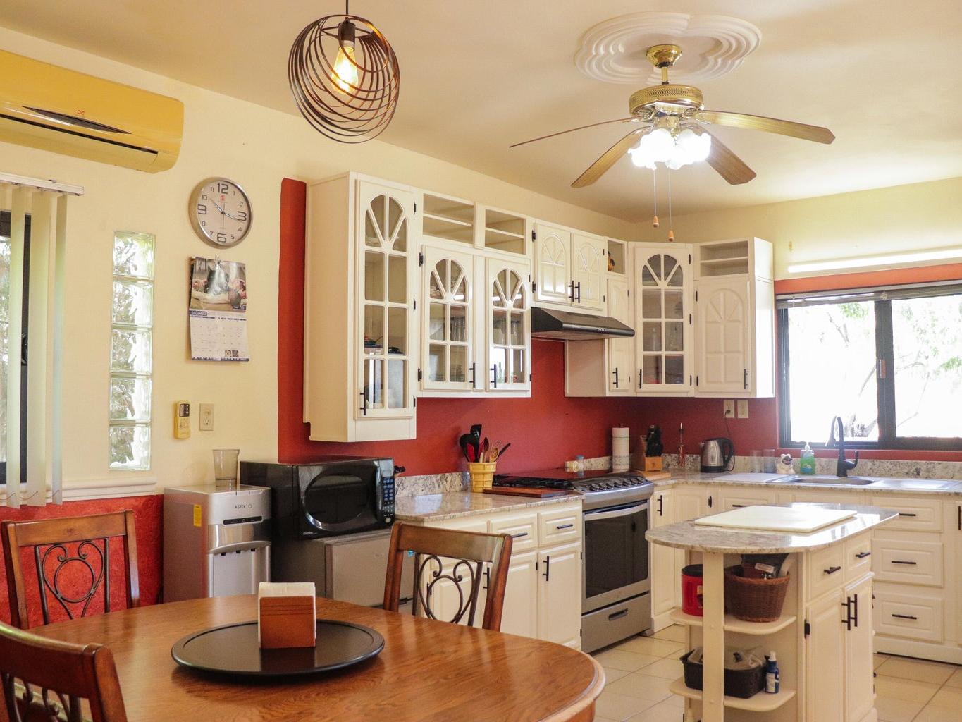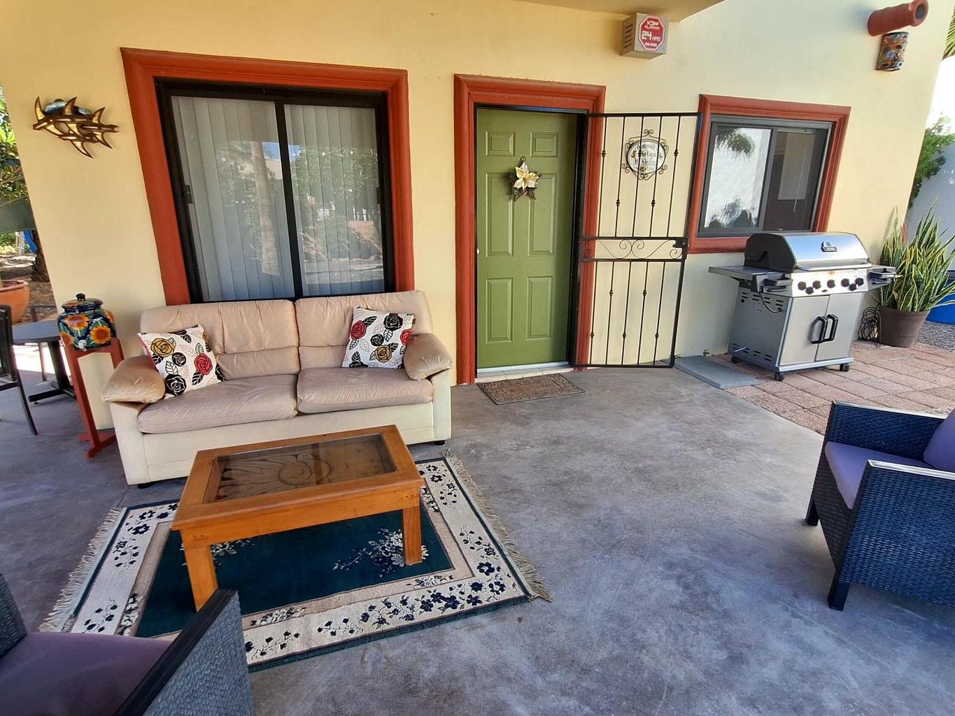 This inviting 2-bed, 2-bath home in El Centenario is a great match for buyers seeking comfort, style, and value. Nicely maintained and offered fully furnished, this residence is move-in ready from day one. Sip your morning coffee and watch stunning sunrises with Bay views from your private rooftop terrace. The large, fully fenced and walled lot showcases mature trees and landscaping, shaded parking for three vehicles, and plenty of outdoor seating for gatherings. A versatile mini-garage offers space for your ATVs, storage, or a workshop. Comfortable, practical, and charming, this property delivers outdoor living, privacy, and convenience all in one—perfect as a full-time home, vacation retreat, or investment.