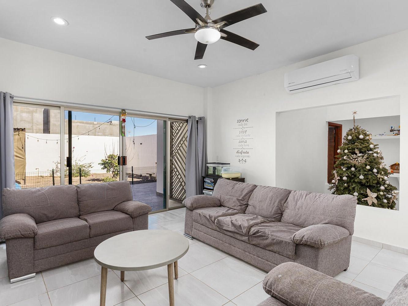 Casa Cardenal is a contemporary residence in El Centenario, La Paz, offering a flexible layout designed for comfort, light, and everyday living. The first floor features two bedrooms and three full bathrooms, an open-concept kitchen and living area, and direct access to outdoor terracesâ€'an appealing option for those seeking main-level living in the area. The second floor hosts a spacious primary suite with a private balcony overlooking the desert landscape, with additional space that allows for a future bedroom or terrace. The ample backyard provides room to add a pool, while select areas of the home offer opportunity to personalize and add value. With a gated two-car garage and proximity to the ocean, Casa Cardenal presents both lifestyle and potential in a peaceful coastal setting