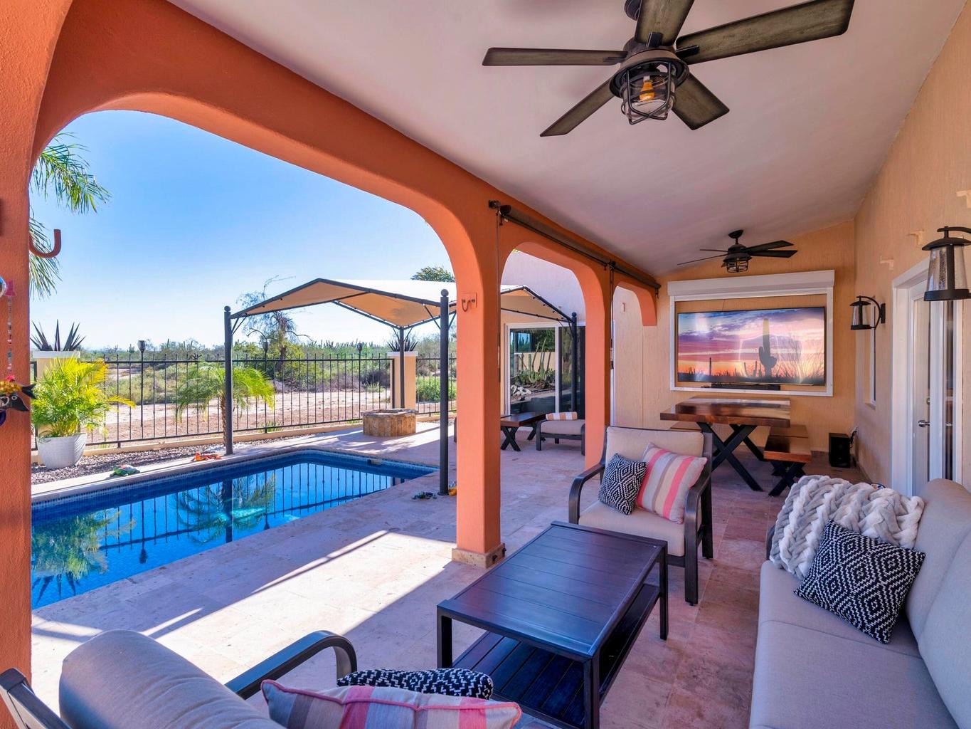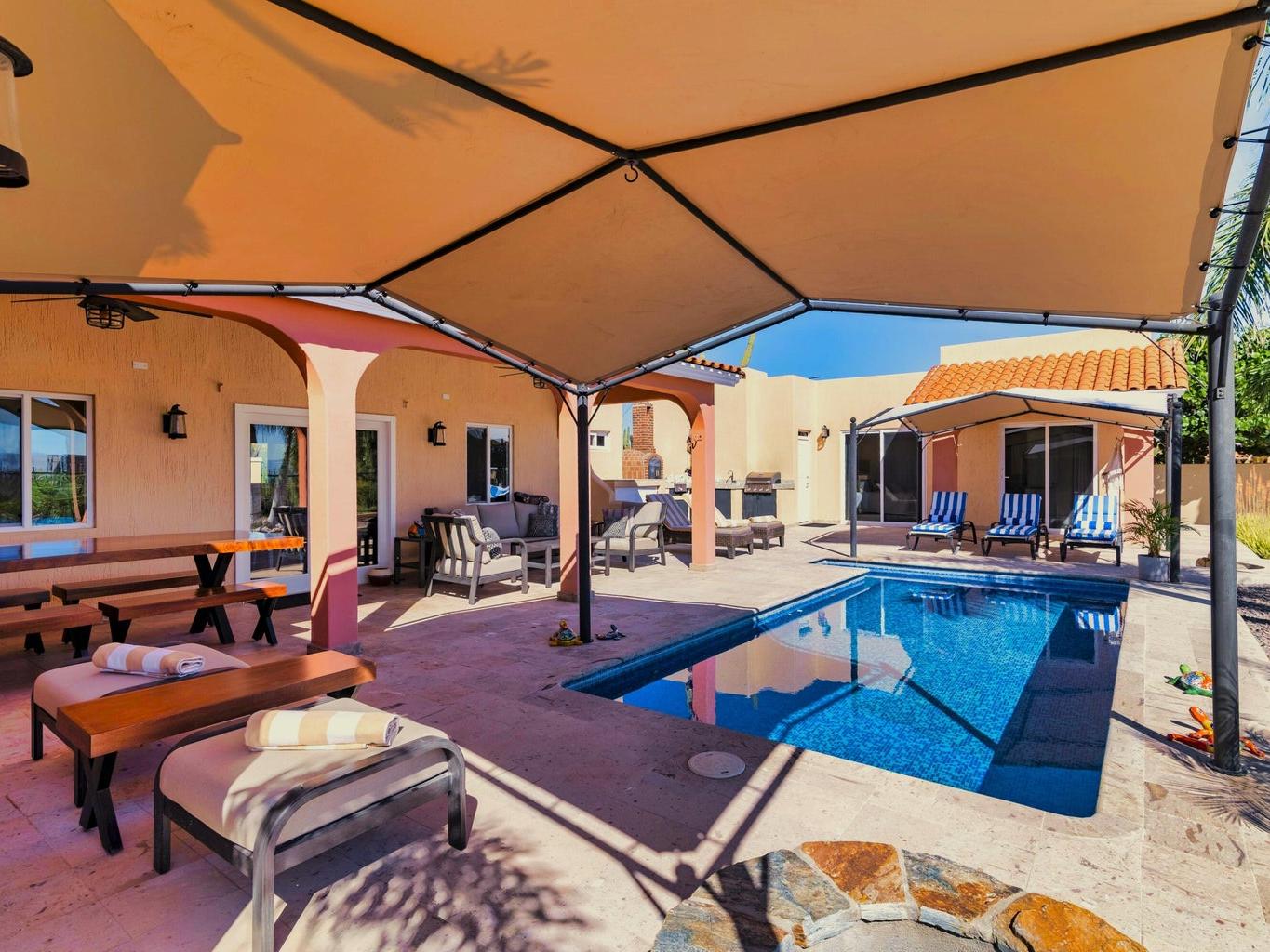 The home includes all the amenities expected in a quality beach property: a lap pool, BBQ area, shaded outdoor TV space, and a bathtub with ocean views. Additionally, it offers a covered garage and ample extra parking, perfect for an RV (all uttilities for an rv are in place