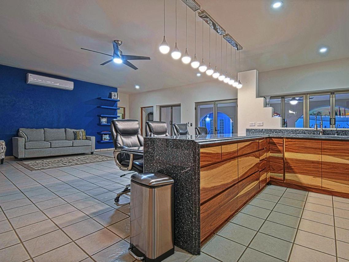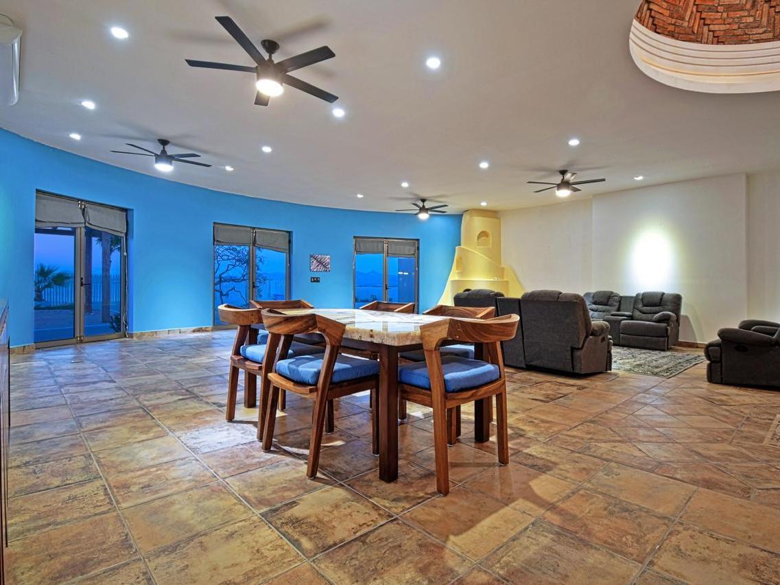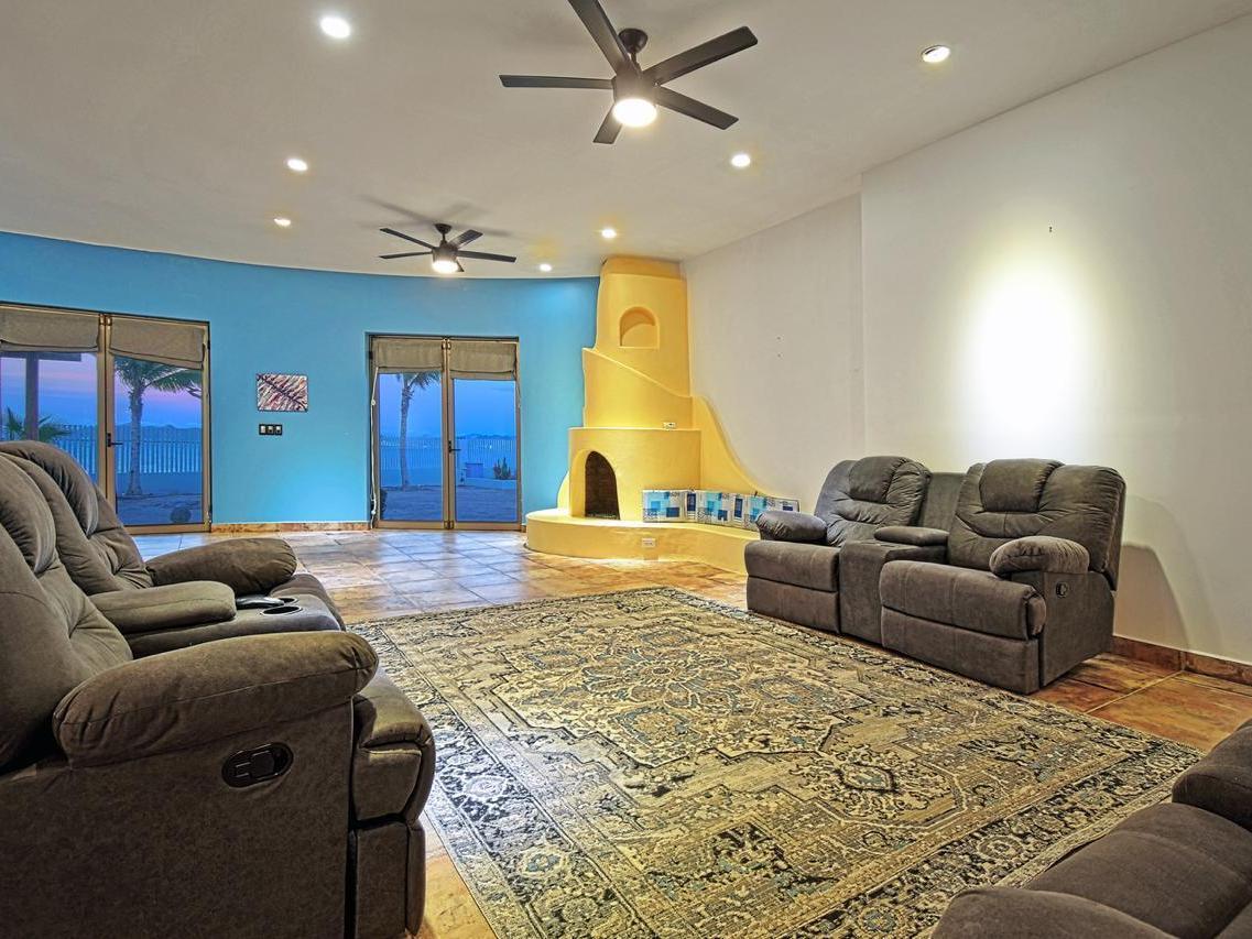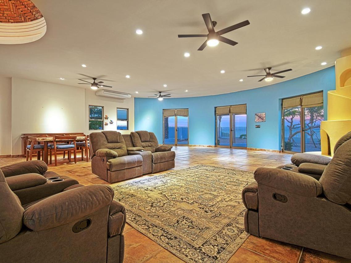 Beachfront home in El Comitán, one of La Paz's most desirable and peaceful areas. This spacious property features 5 bedrooms and 4 bathrooms and 2 half bathrooms, including two independent casitas, each with a full bath and each with their own individual electrical meters. Direct beach access and stunning views of the Bay of La Paz.