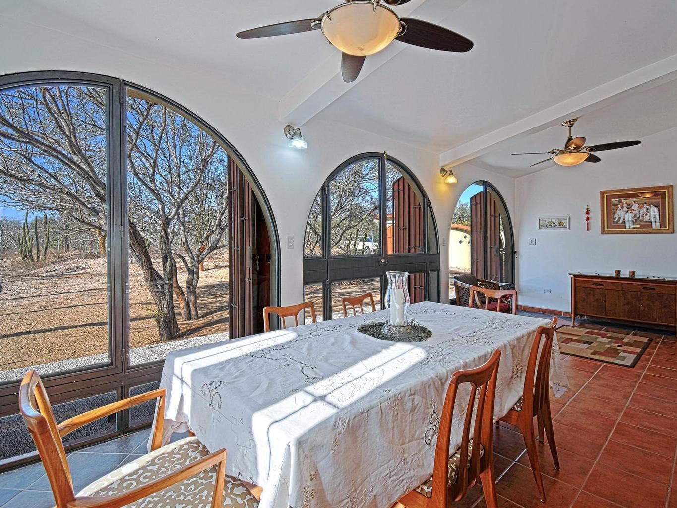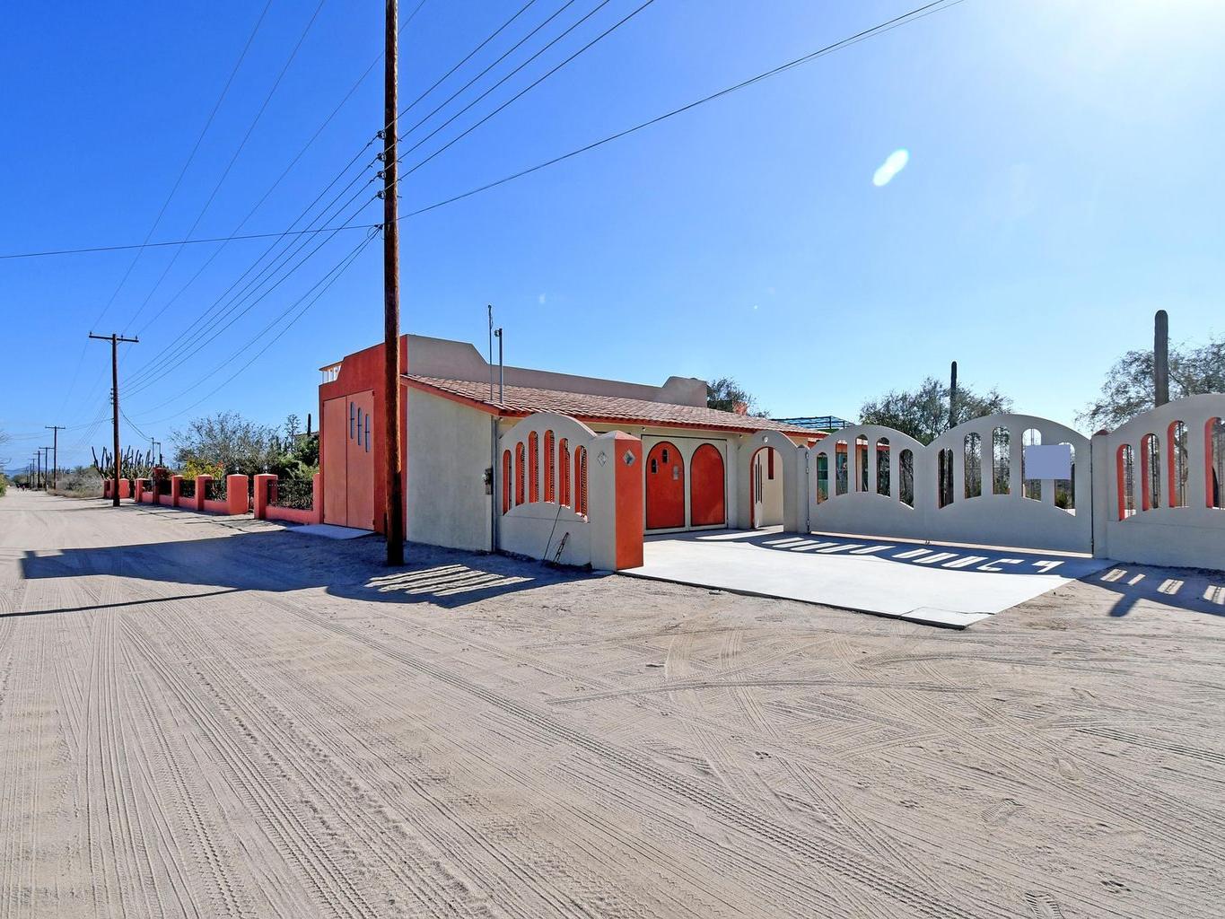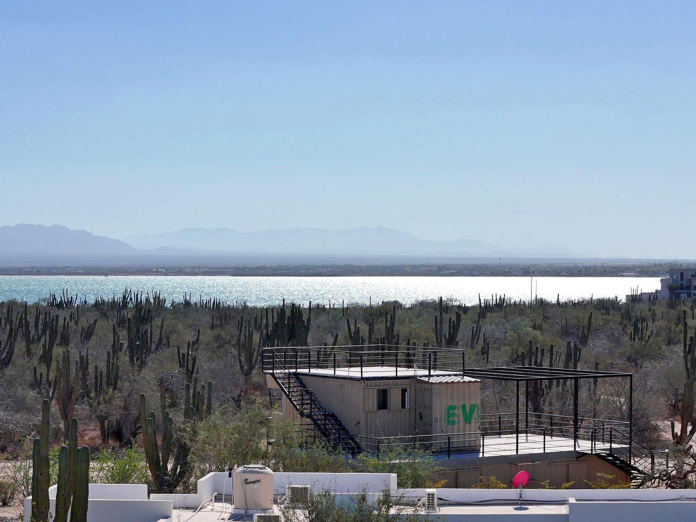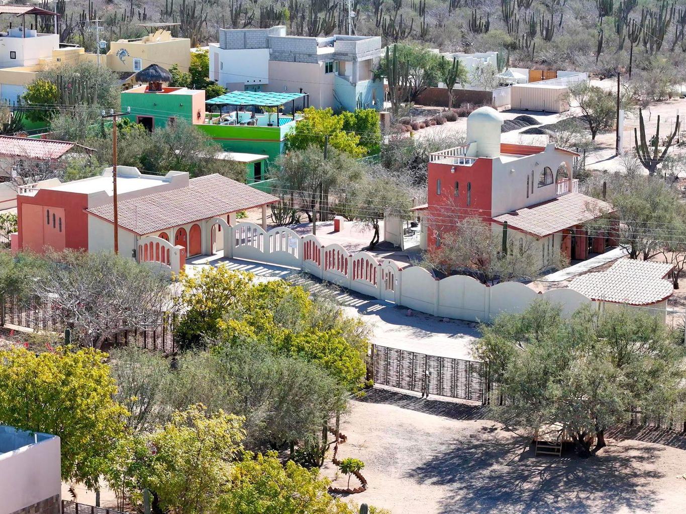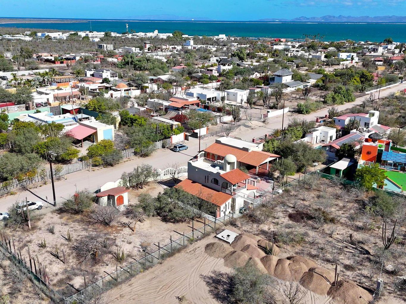 Located in the peaceful coastal community of Comitán, just north of La Paz, this one-of-a-kind property offers space, privacy, and flexibility on an expansive 1,612 m² lot within walking distance to the water. The main level features a charming residence with open living and dining areas, kitchen, one bedroom with full bath, laundry area, and a large covered porch. Oversized windows invite natural light and fresh ocean breezes, creating seamless indoor-outdoor living. The second level is independently accessed and includes a private bedroom with full bath. A spiral staircase leads to a rooftop terrace with beautiful views of the Bay of La Paz and city lights, ideal for sunset gatherings or quiet mornings