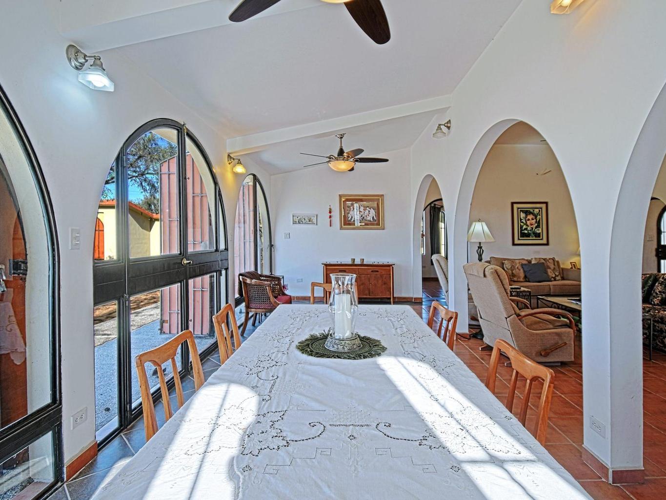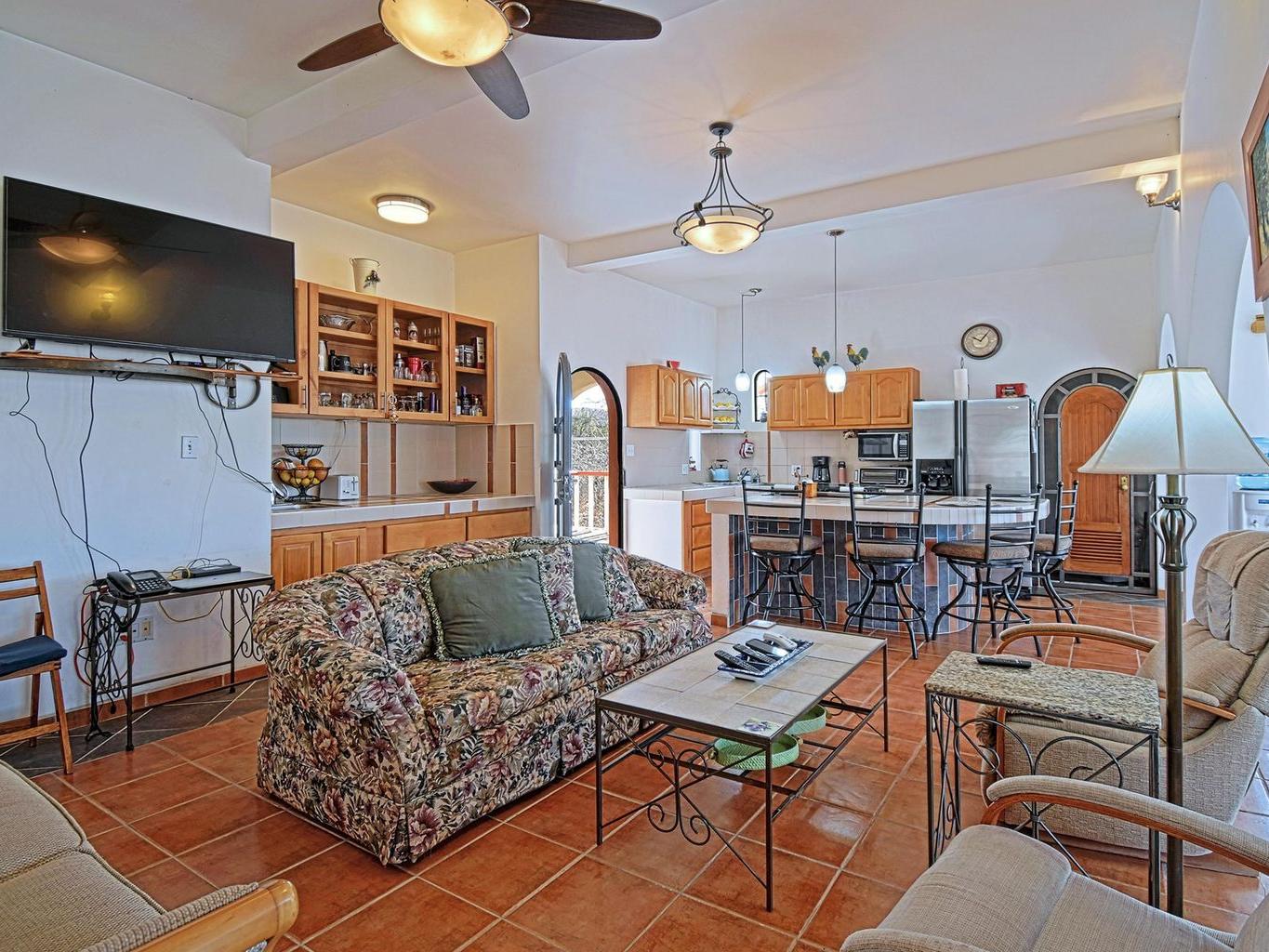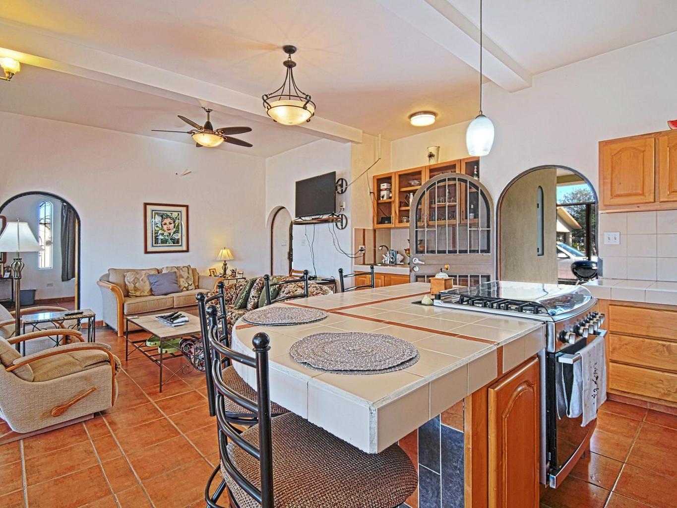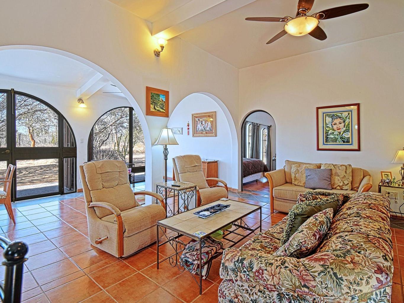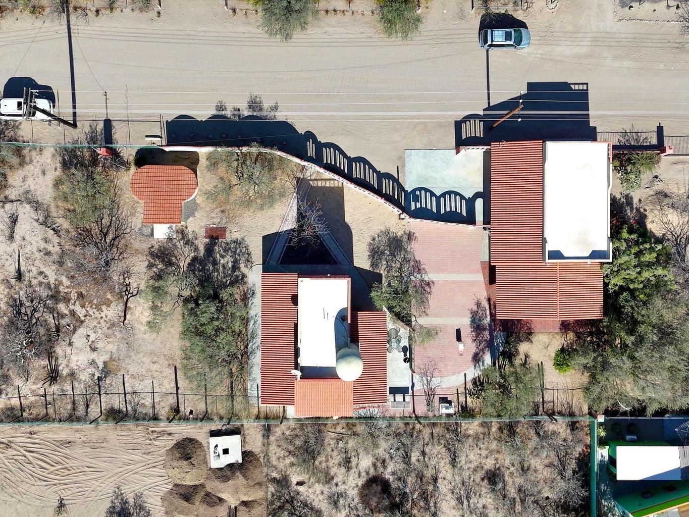 Located in the peaceful coastal community of Comitán, just north of La Paz, this one-of-a-kind property offers space, privacy, and flexibility on an expansive 1,612 m² lot within walking distance to the water. The main level features a charming residence with open living and dining areas, kitchen, one bedroom with full bath, laundry area, and a large covered porch. Oversized windows invite natural light and fresh ocean breezes, creating seamless indoor-outdoor living. The second level is independently accessed and includes a private bedroom with full bath. A spiral staircase leads to a rooftop terrace with beautiful views of the Bay of La Paz and city lights, ideal for sunset gatherings or quiet mornings