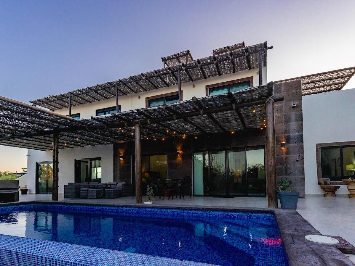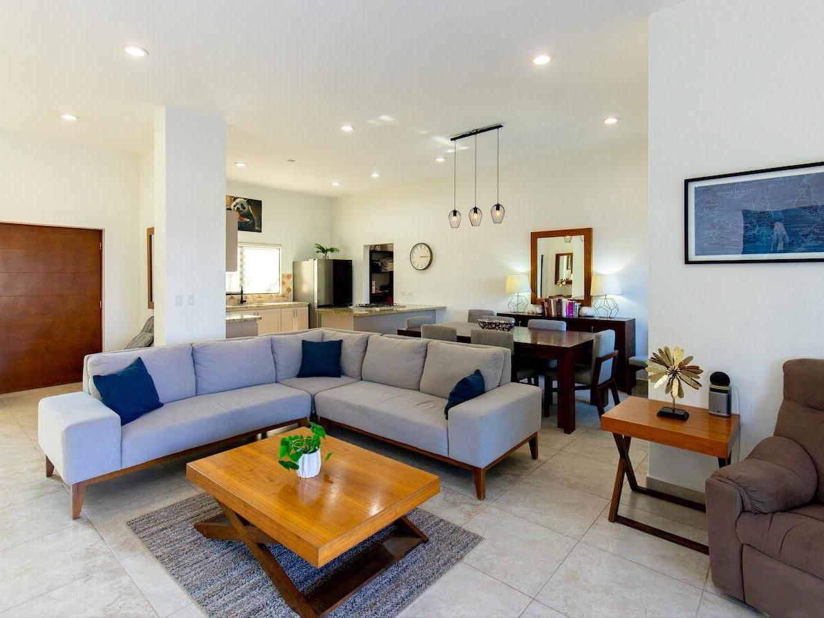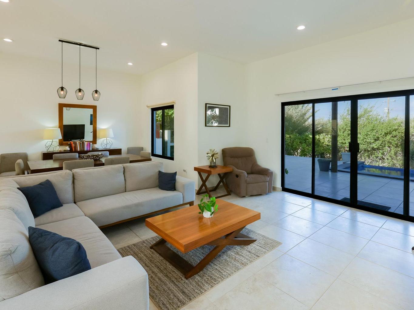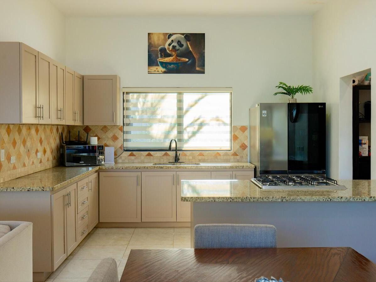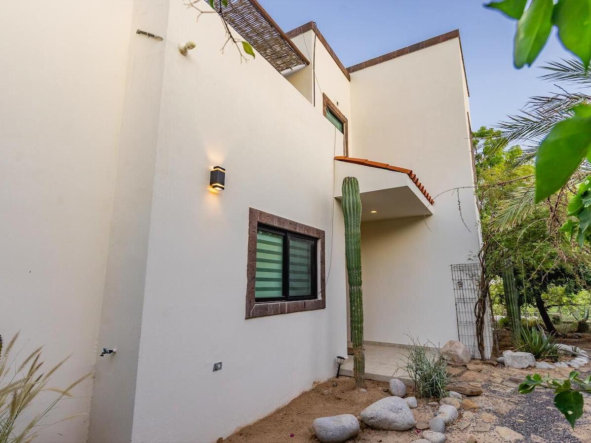 Casa Panda is a private coastal retreat in El Sargento, BCS, 800m from the beach, surrounded by natural vegetation. The main house has 3 bedrooms, 3.5 bathrooms with full baths and large closets, all with AC. The ground-floor bedroom opens to the pool/deck; upper bedrooms have panoramic Sea of Cortez views. Includes storage and laundry/cleaning rooms. Spacious living, dining, and modern kitchen with granite counters. Outdoor area: heated infinity pool, deck, seating, Argentinian grill, brick oven, fire pit, Palo de Arco shade, terrace with ocean/mountain views. Furnished studio unit with private entrance, 73 m², 2 levels, rental potential. Electricity (CFE), municipal water (SAPA), septic with biodigester.