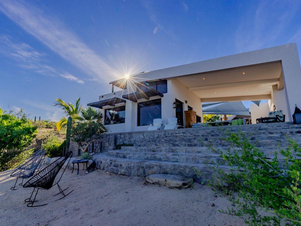 This hilltop property offers uninterrupted ocean views, complete privacy, and direct access from the main road, just meters from Rasta Beach with private beach access. Elevated positioning ensures protected views over the Sea of Cortez. The 4,258.223 m² land includes subdivision potential and a modern 198.94 m² residence featuring ocean-facing windows, granite kitchen countertops, polished concrete floors, three bedrooms, two and a half bathrooms, walk-in closet, and a two-car garage. Outdoor living includes a swimming pool, jacuzzi, and a palapa overlooking the sea, framed by the iconic cactus that inspired the name Blue Cactus House. With an excellent rental history, this property offers a rare combination of privacy, luxury, and long-term investment potential in El Sargento, BCS.