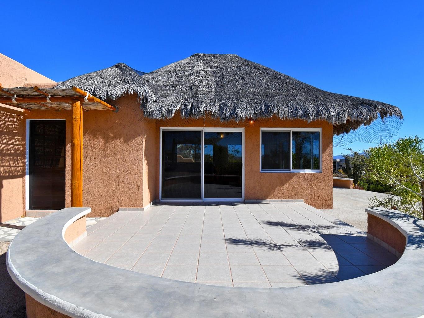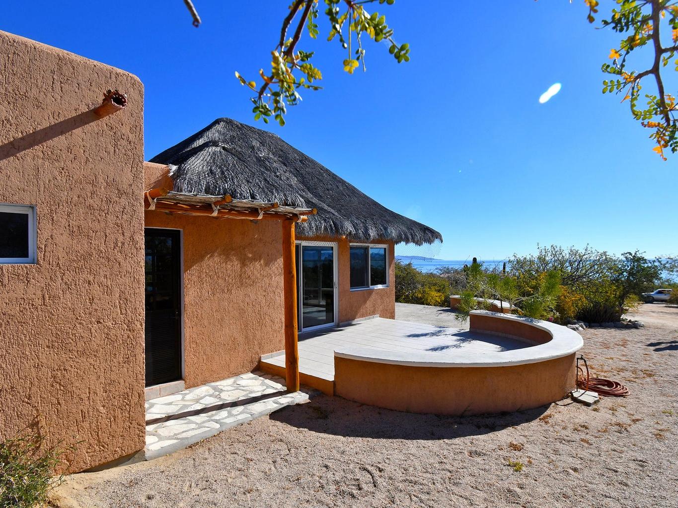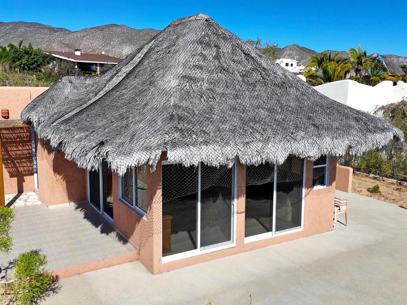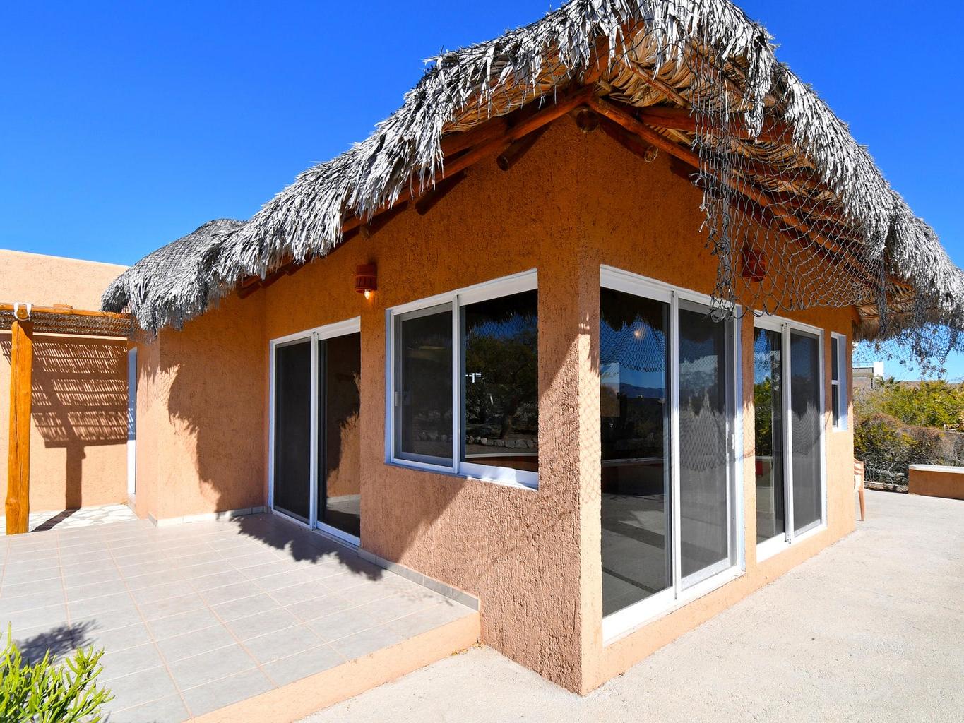 Palapa Sunrise - Your Baja dream retreat awaits. This charming 1-bedroom, 1-bath home features a beautifully woven palapa roof over the living and dining area, creating a warm coastal ambiance. Large windows frame water views and fill the home with natural light. The property sits on one of two adjacent lots within a private gated community. The second lot, dotted with native desert vegetation, provides a natural buffer that helps protect the views and privacy and may offer potential for a future casita or guest space, subject to community guidelines. A rare opportunity to enjoy relaxed Baja living as well as world class windsports and mountain biking in a peaceful setting and at an affordable price. Beach access is within walking distance.