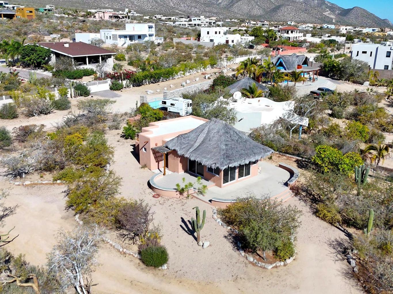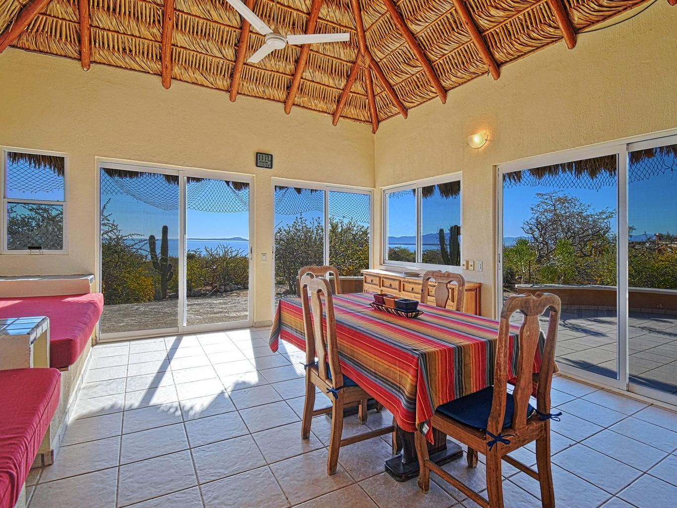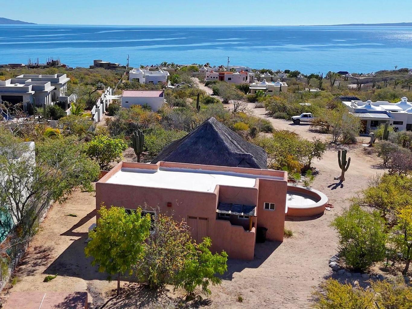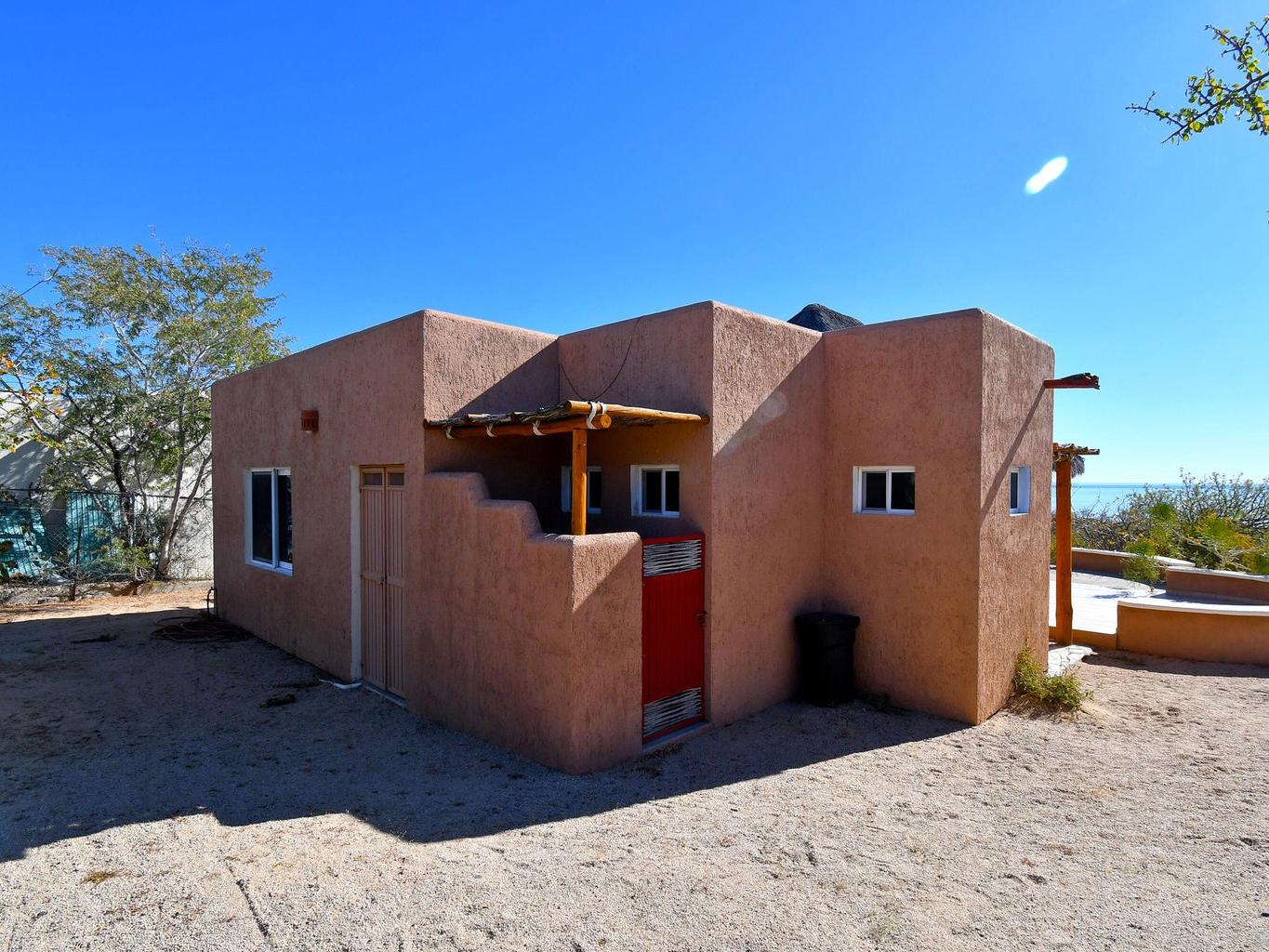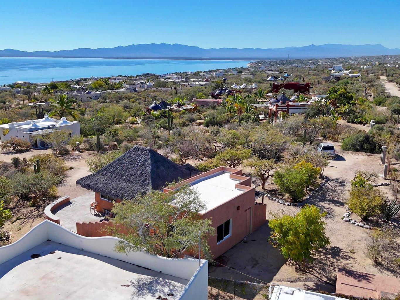 Palapa Sunrise - Your Baja dream retreat awaits. This charming 1-bedroom, 1-bath home features a beautifully woven palapa roof over the living and dining area, creating a warm coastal ambiance. Large windows frame water views and fill the home with natural light. The property sits on one of two adjacent lots within a private gated community. The second lot, dotted with native desert vegetation, provides a natural buffer that helps protect the views and privacy and may offer potential for a future casita or guest space, subject to community guidelines. A rare opportunity to enjoy relaxed Baja living as well as world class windsports and mountain biking in a peaceful setting and at an affordable price. Beach access is within walking distance.