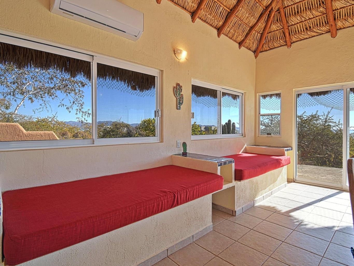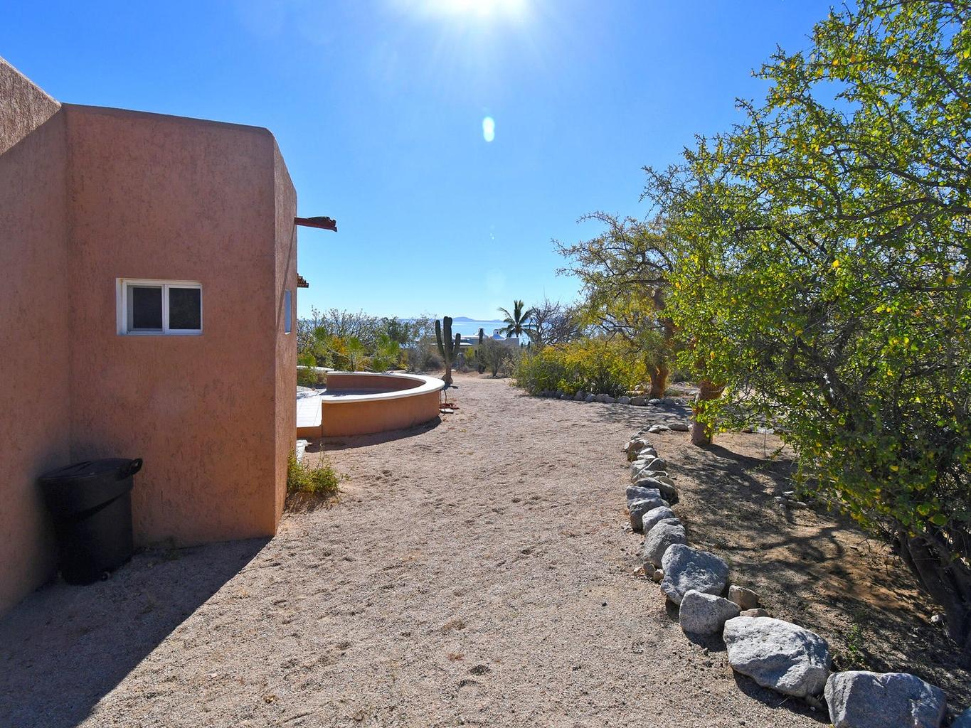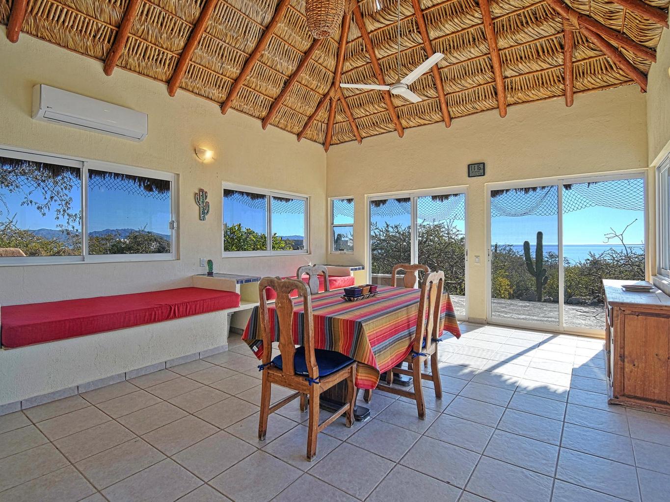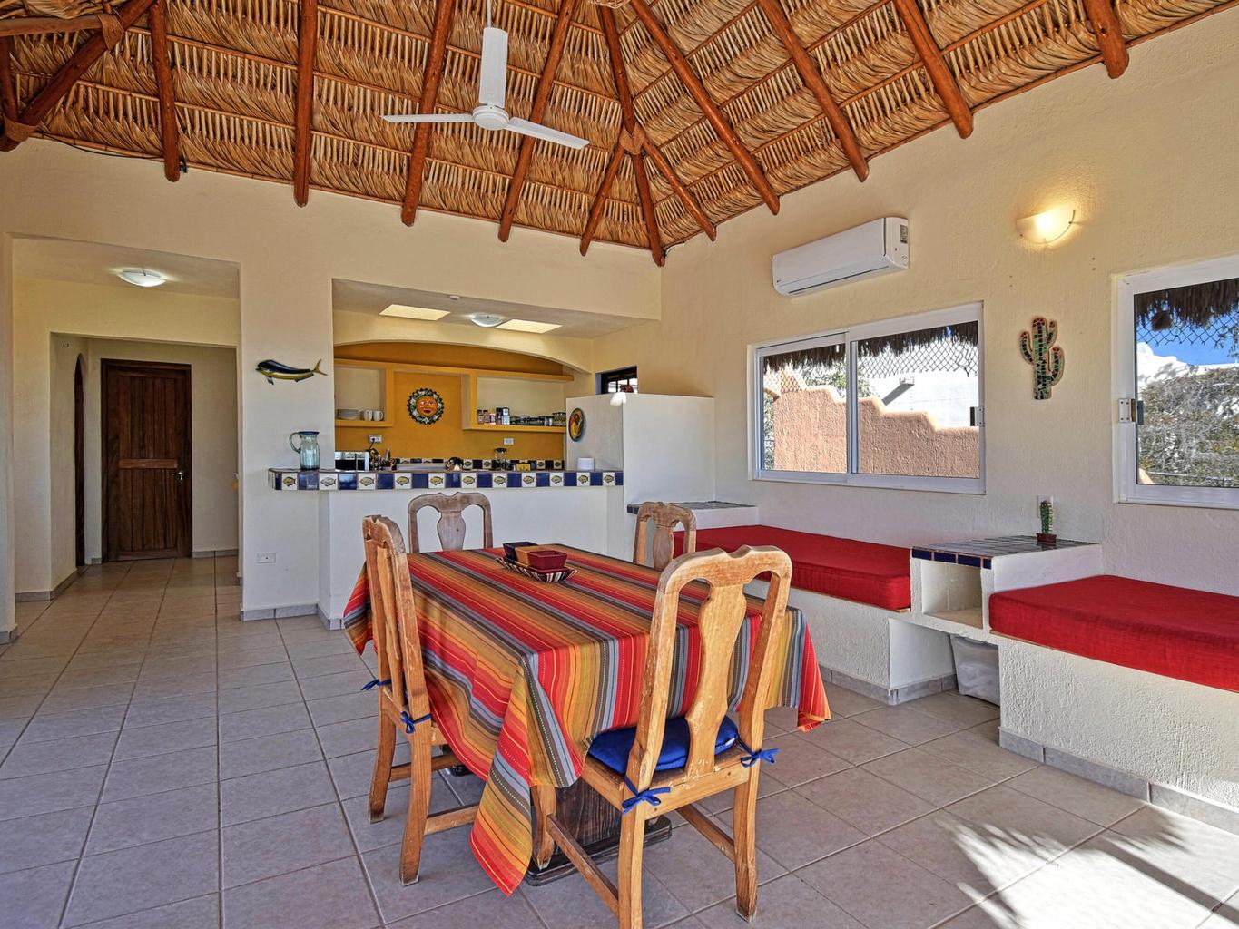 Palapa Sunrise - Your Baja dream retreat awaits. This charming 1-bedroom, 1-bath home features a beautifully woven palapa roof over the living and dining area, creating a warm coastal ambiance. Large windows frame water views and fill the home with natural light. The property sits on one of two adjacent lots within a private gated community. The second lot, dotted with native desert vegetation, provides a natural buffer that helps protect the views and privacy and may offer potential for a future casita or guest space, subject to community guidelines. A rare opportunity to enjoy relaxed Baja living as well as world class windsports and mountain biking in a peaceful setting and at an affordable price. Beach access is within walking distance.