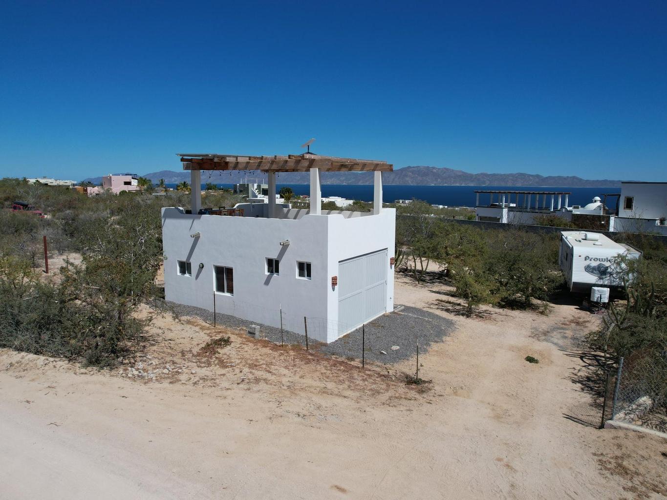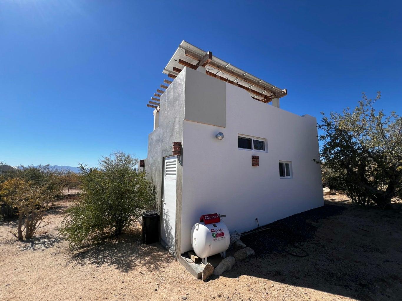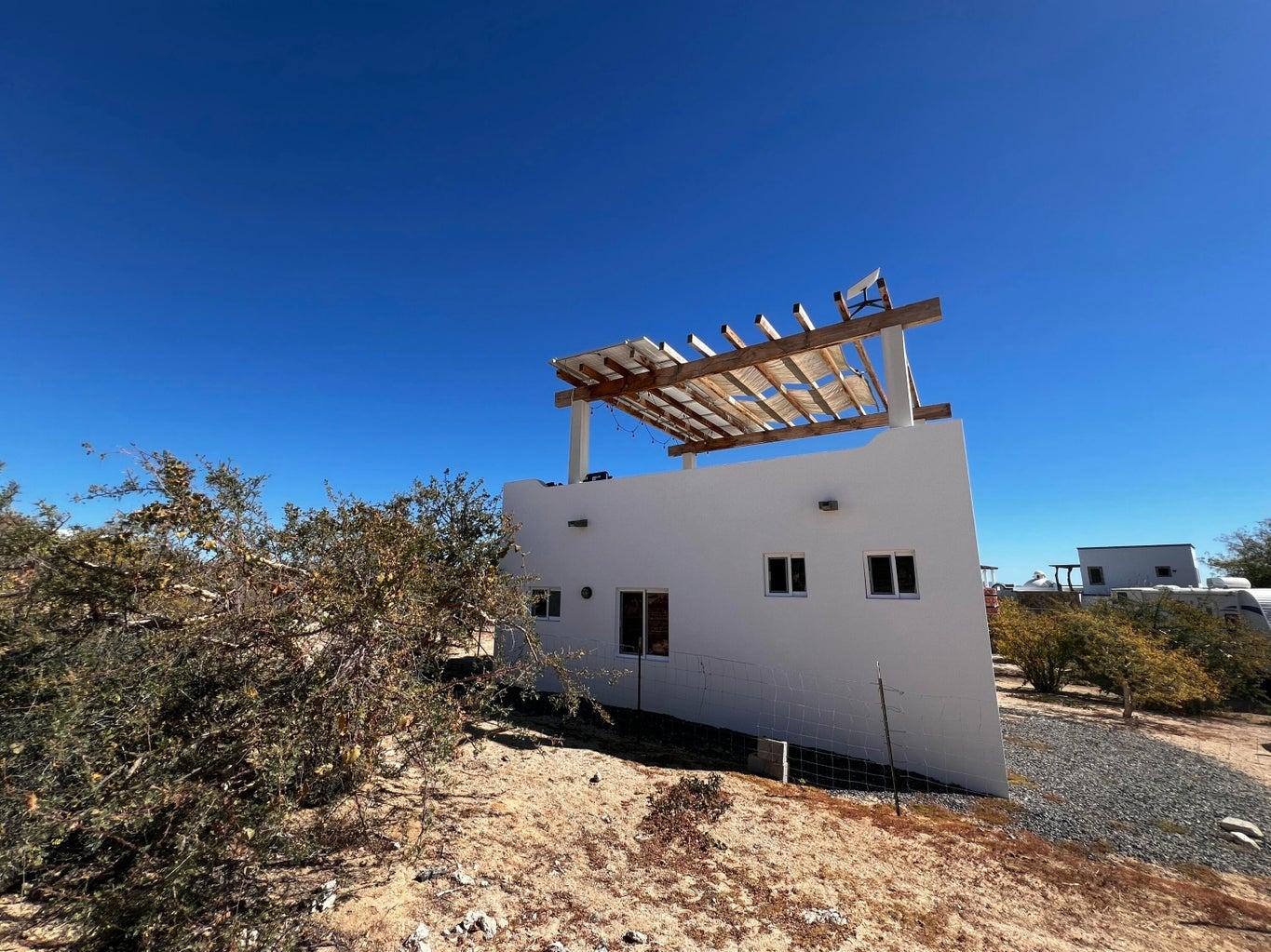 Discover an incredible opportunity to own a beautiful unit in El Sargento, where comfort, sustainability, and Baja charm come together. This unique property features a solid structure with a thoughtfully designed interior, including a full bathroom and functional cooking area--perfect for immediate use or future expansion. Enjoy a spacious rooftop terrace with a pergola, ideal for relaxing. Designed for off-grid living, it includes six solar panels, a 15,000-liter cistern, and a septic system--offering a fully self-sustaining setup. As a bonus, a 2013 Prowler camper is included, providing extra space for guests or flexible living.