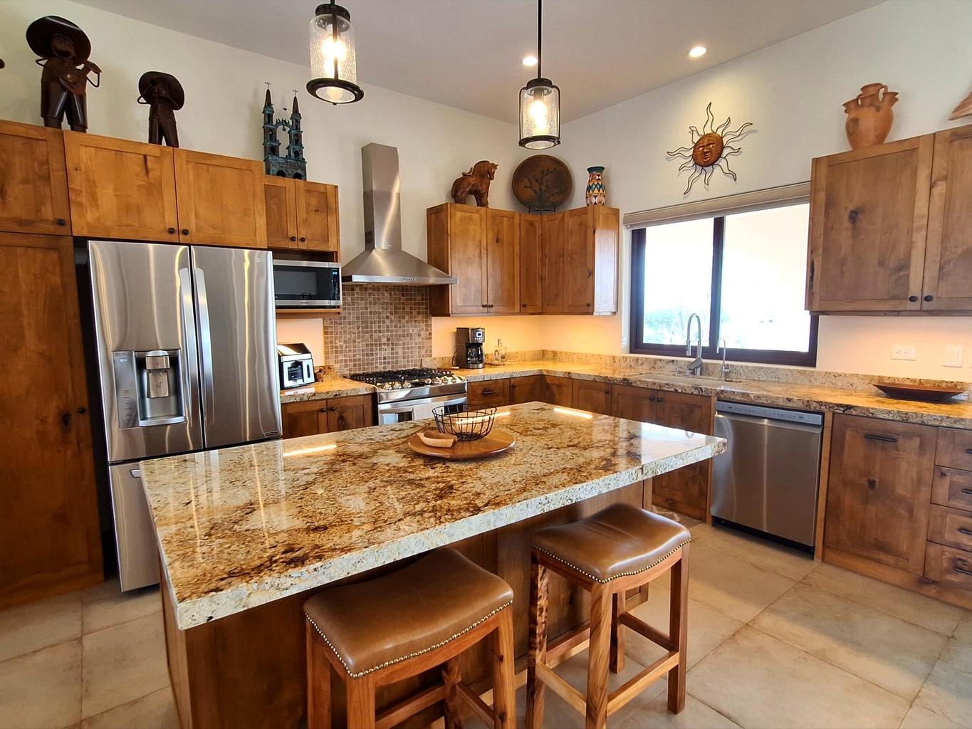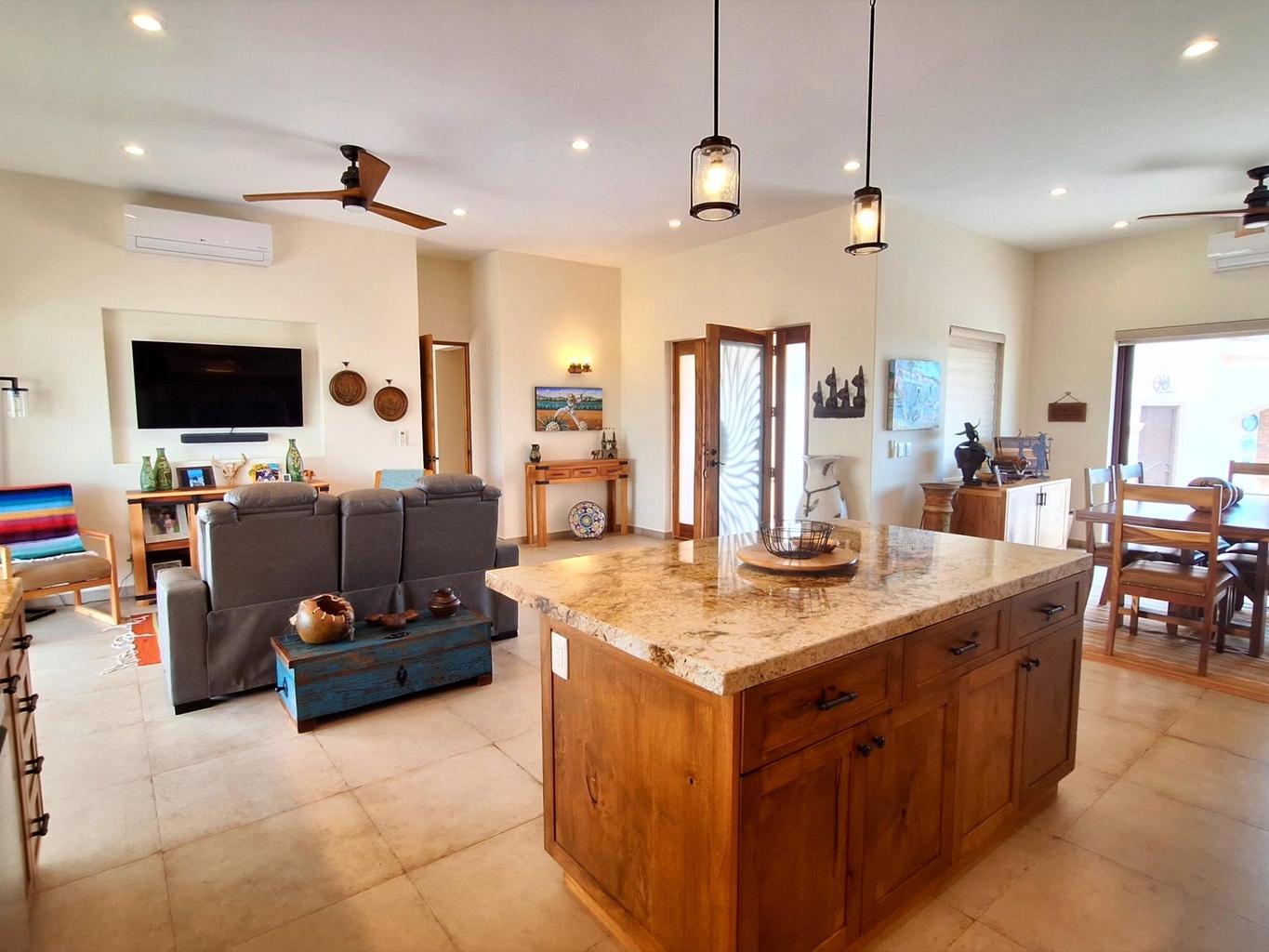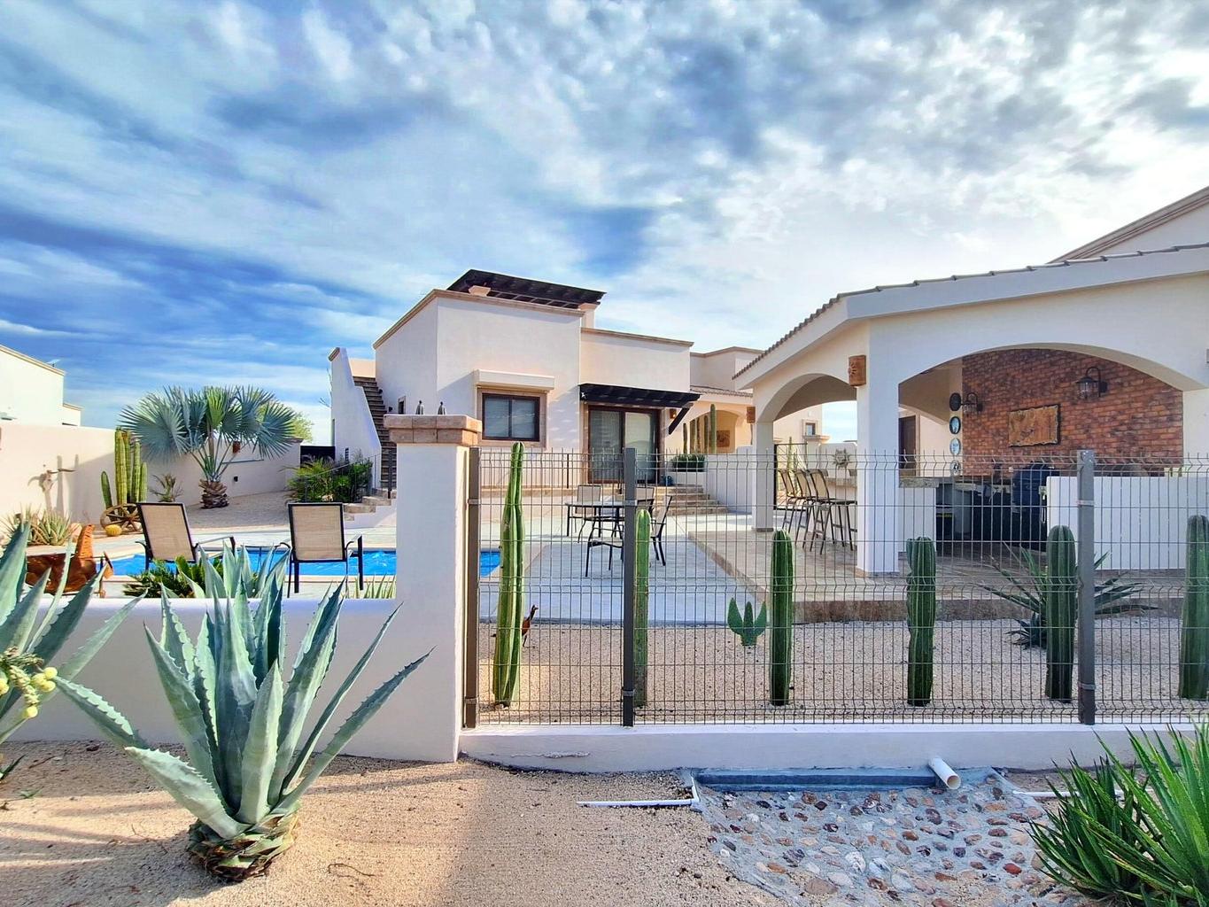 Located in the sought-after gated community of Haciendas Palo Verde, this well-maintained 3-bedroom, 3-bath home offers privacy, security, and stunning views. Enjoy a heated pool and a well-equipped outdoor kitchen designed for relaxed Baja living and entertaining. Solar panels significantly reduce electricity costs, with a whole home generator as back up. The property is partially furnished and includes a separate casita, ideal for guests or a home office. A two-car garage adds convenience, while the thoughtful layout and excellent upkeep make this home truly move-in ready. Residents appreciate the quiet surroundings, reliable infrastructure, and the sense of community that make this enclave one of the area's most desirable addresses.