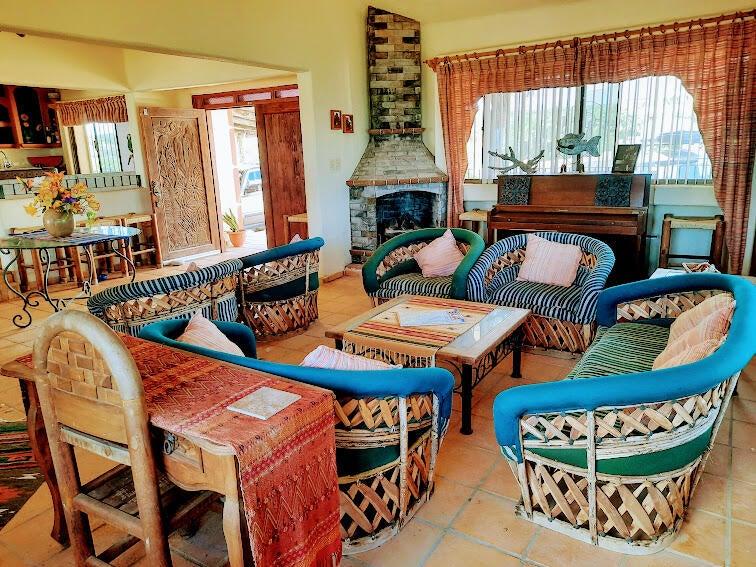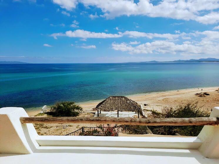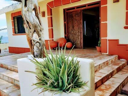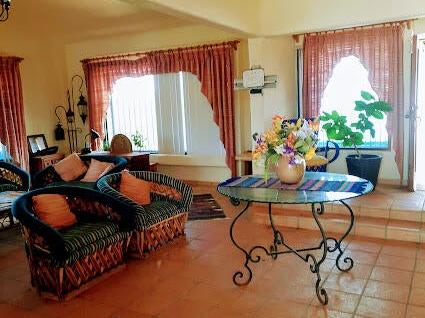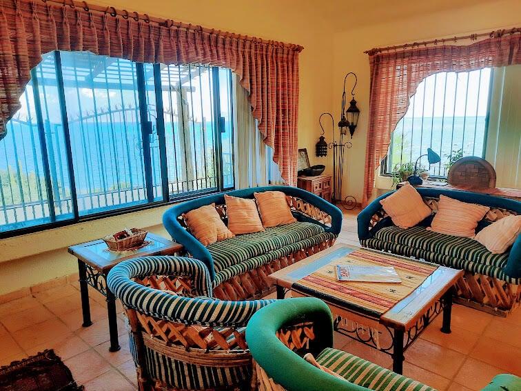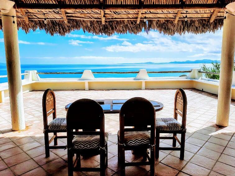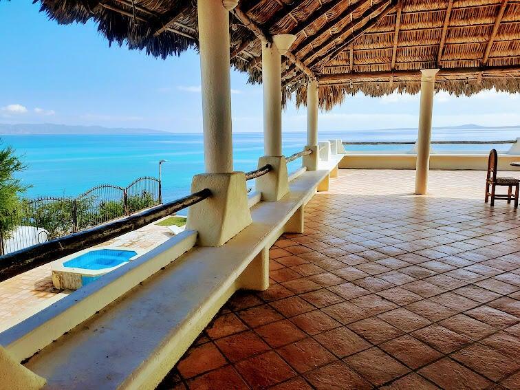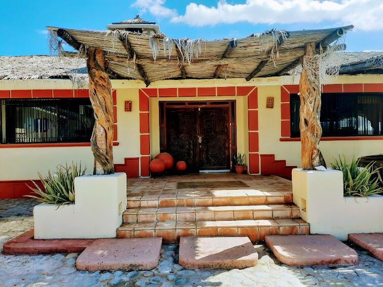 Beachfront Old World Style Colonial Estate Home with Swimming Pool and Spa waterfall feature has incredible ocean views overlooking the entire coastline of La Ventana Bay from its hilltop vantage point! Gourmet Kitchen and Large Living Room with chandalier at the entryway. Grand palapa giant terrace has stunning views, outdoor island bar with sink, plus built in seating around the entire perimeter. Downstairs 3 bedrooms are Poolside with a second living area, Master Bedroom has Pool and Ocean Views with stairs leading down to the sandy beach, and a cement pad just above the waterline. Walled and gated entirely, this stunning property encompasses from main road to beach! Home needs work but it will be a stunning remodel. Someone with vision and creativity will bring out best qualties!
