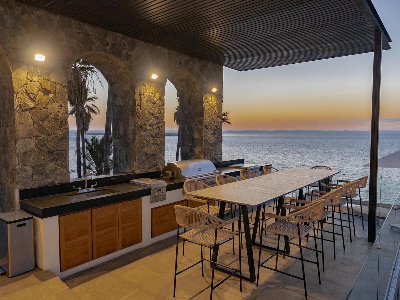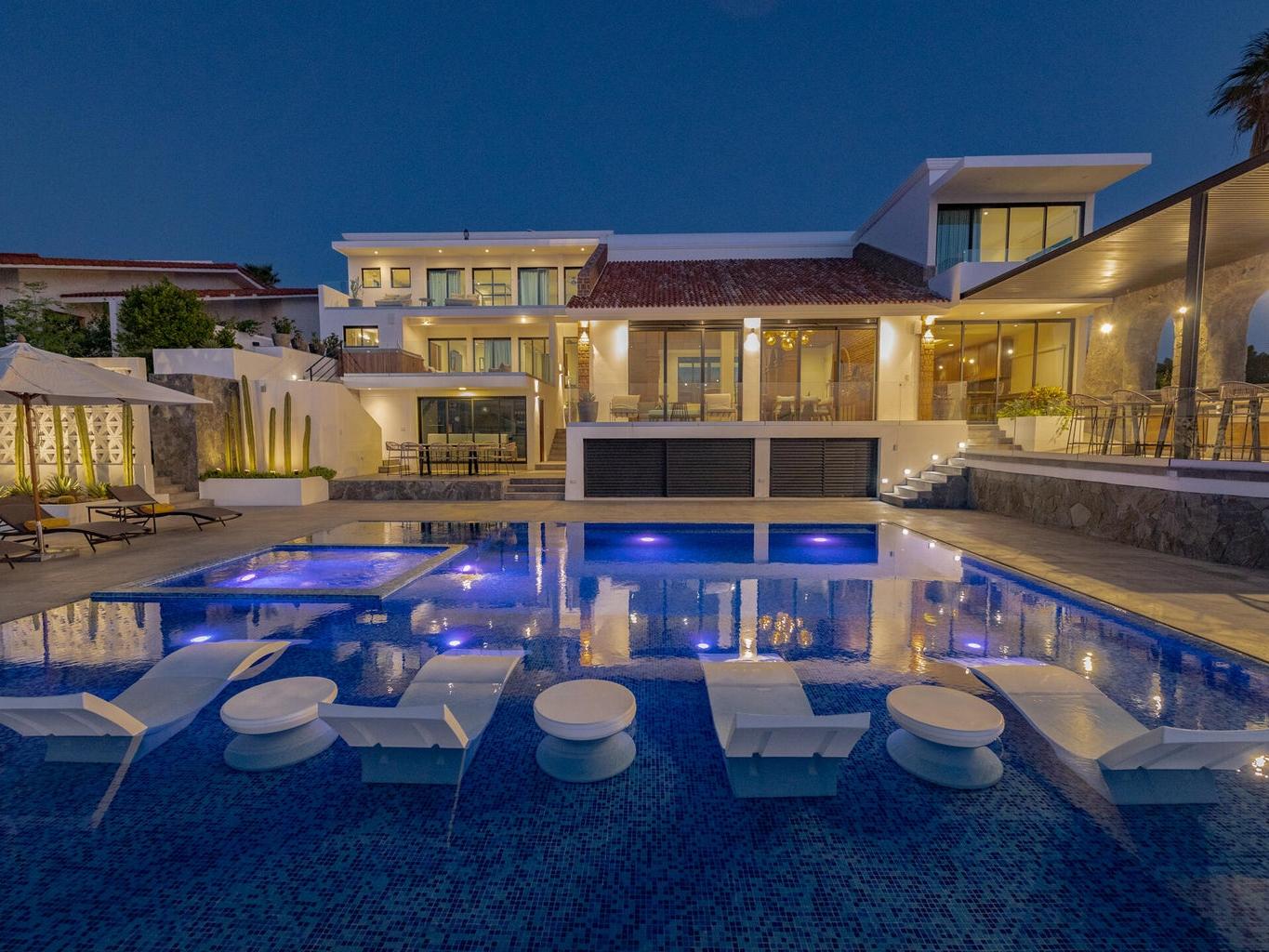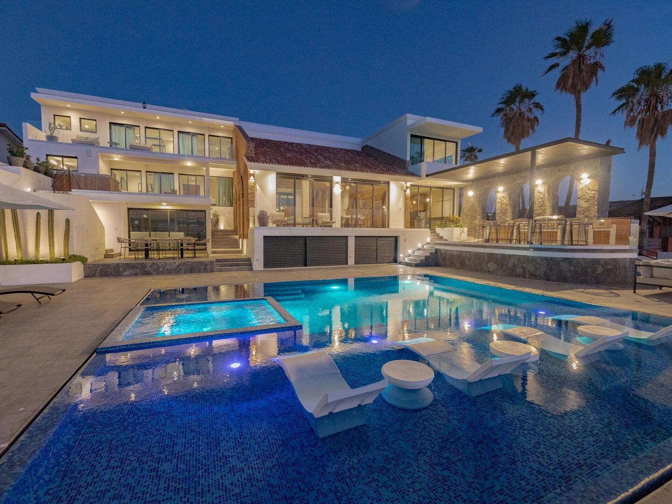 Villa Palmares is a fully renovated luxury oceanfront estate with panoramic Sea of Cortez views, located in a gated community with 24/7 security in La Paz.
