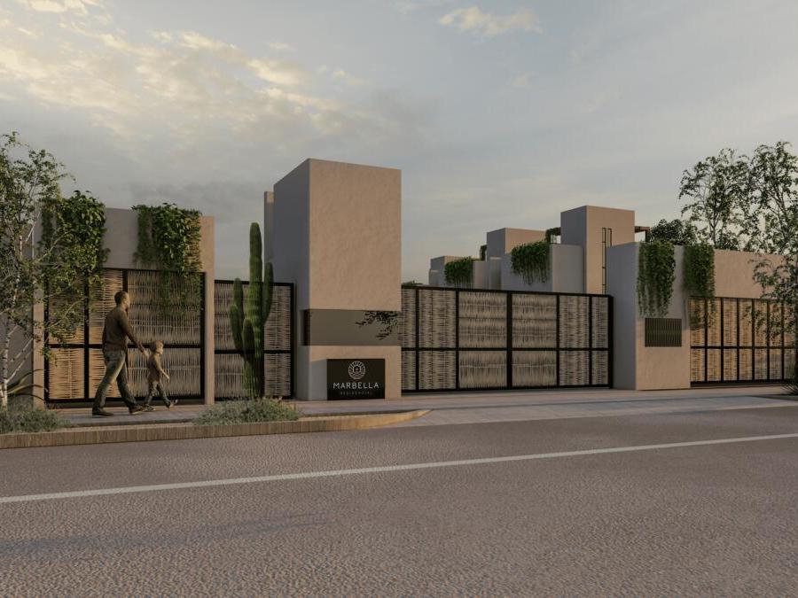 Discover Marbella Residencial, a private community of only 27 homes with controlled access, CCTV, and perimeter walls in Chametla, La Paz, minutes from malls, services, and the airport.